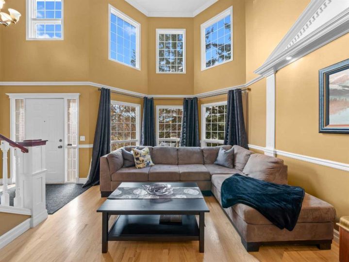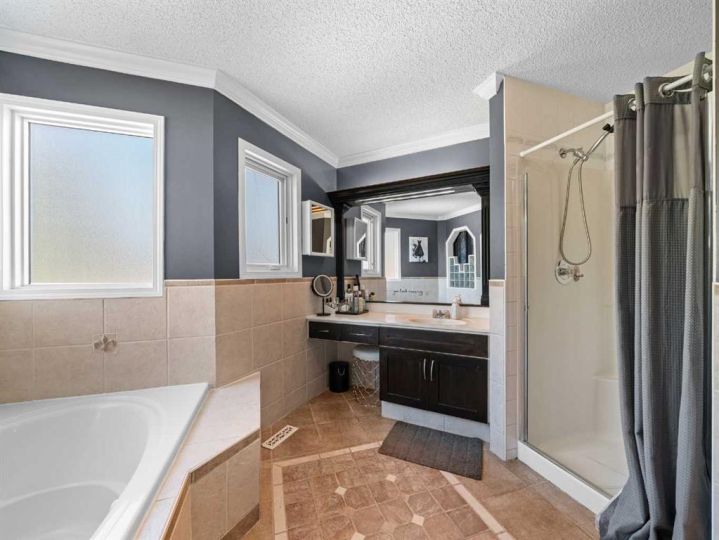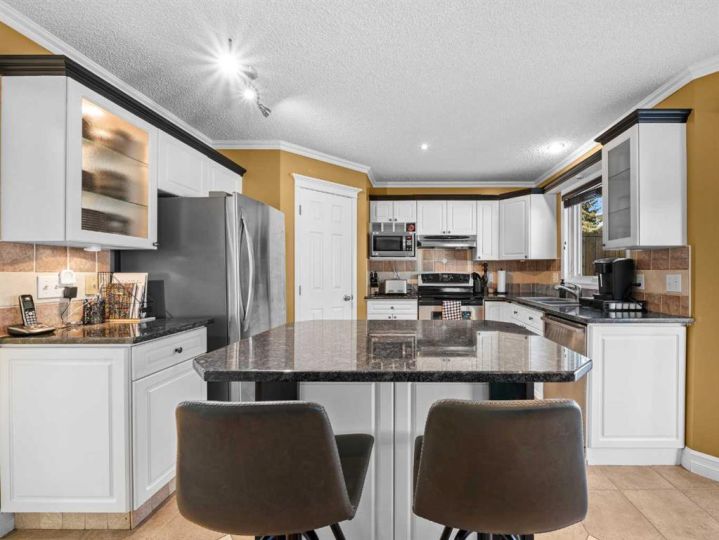 Welcome to this magnificent two-story family home in the desirable community of Scenic Acres — offering a timeless Brick curb appeal, thoughtful updates, and over 2,500 sq. ft. of beautifully maintained living space. From the moment you arrive, the classic brick exterior and meticulous landscaping set the tone for the warmth and quality that continues inside. The main floor welcomes you with vaulted ceilings and massive windows that fill the living and dining rooms with natural light. The central staircase layout creates an elegant flow throughout the main level, while the spacious kitchen features granite countertops, an eating bar, and a newer fridge and sink (2016) — perfect for family meals or entertaining. Upstairs, you’ll find three generously sized bedrooms, including a serene primary retreat with a four-piece ensuite. The lower level offers a cozy home theatre area, laundry room, and plenty of storage space — ideal for a growing family’s needs. Step outside to a private, park-like backyard with a large patio and mature landscaping, fully fenced for privacy and safety. The double detached garage echoes the home’s classic brick finish and adds even more character and convenience. This home has seen extensive upgrades, including a new furnace and water heater (2022), 30-year roof and windows (2013), a granite kitchen renovation (2016), designer paint, ceramic backsplash, crown molding through-out, and more. Located in a quiet, family-friendly neighborhood close to parks, schools, and transit — this Scenic Acres gem truly offers it all.