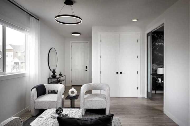 Saffron II by Shane Homes | Pre-Construction in Cornerstone. This spacious two-storey home offers a main floor bedroom and full bath, ideal for guests or extended family. Enjoy the upgraded Super Kitchen with spice kitchen and open-concept layout connecting the kitchen, dining, and living areas. Upstairs features three large bedrooms, a family room, and plenty of space for comfortable living. Added features include 9-foot basement ceilings, a gas line for BBQ, rough-in waterlines, and 200 AMP service. This home is fully customizable, including the model, lot, and finishes. Photos are from the Saffron II showhome and are representative only.