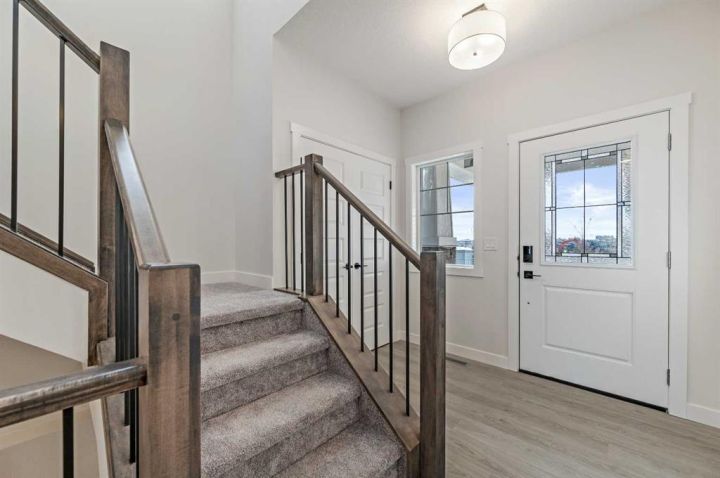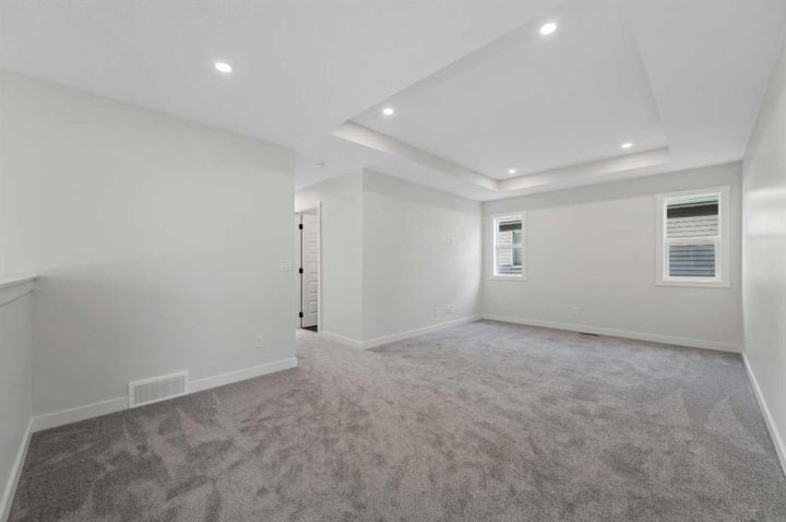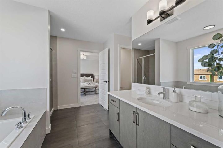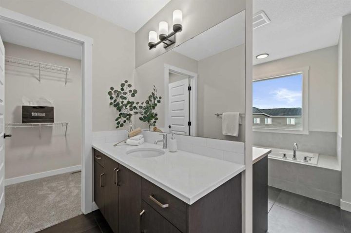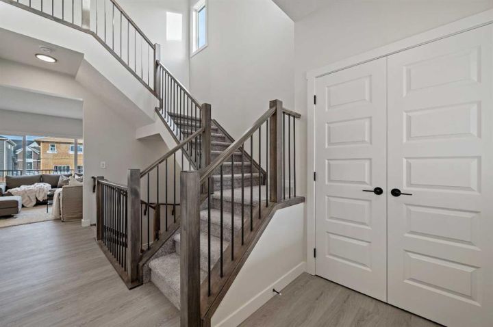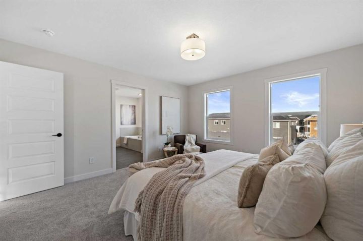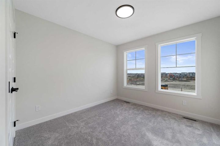 Welcome to the Marconi II by Genesis Builders, a brand new 4-bedroom, 3-bathroom home offering just over 2,300 square feet of well-designed living space in the sought-after community of Bayview. The main floor features an open-concept layout with 9-foot ceilings, a spacious kitchen with a walk-in pantry and a bright dining and living area centered around a cozy fireplace. A main floor bedroom or office and a full bathroom provides flexibility for guests or family members needing single-level living. Upstairs, the primary suite is a true retreat with double closets and a private ensuite featuring dual sinks, a soaker tub, and a separate shower. Two additional bedrooms, a bonus room, and a convenient upper-floor laundry complete the second floor. Additional highlights include a double attached garage, a rear deck for outdoor living, and a 9-foot basement, ideal for future development. Located in family-friendly Bayview, you are close to parks, pathways, canals, and schools. This new home combines style, functionality, and comfort for modern living. *Area size was calculated by applying the RMS to the blueprints provided by the builder. Taxes to be assessed.