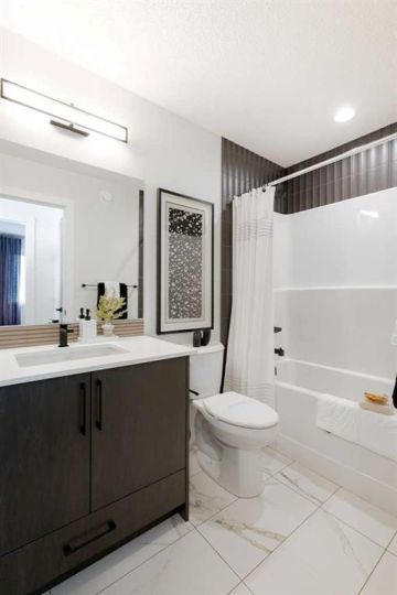 Welcome to the Valencia by Shane Homes | Pre-Construction in Bridgeport, Chestermere. The Valencia is a 3-bedroom, 2.5-bath laned home that can be completely customized to your style. This pre-construction home includes a side entry, concrete parking pad, extra basement window, cabinets to the ceiling, knockdown ceilings, and 200 AMP electrical service. Bridgeport is a fantastic new community in Chestermere offering small-town charm with city convenience, close to parks, pathways, and local amenities. Photos are representative and illustrative only; actual finishes may vary.