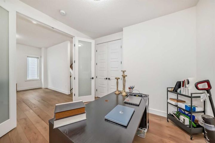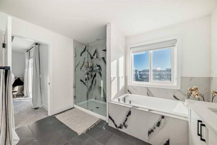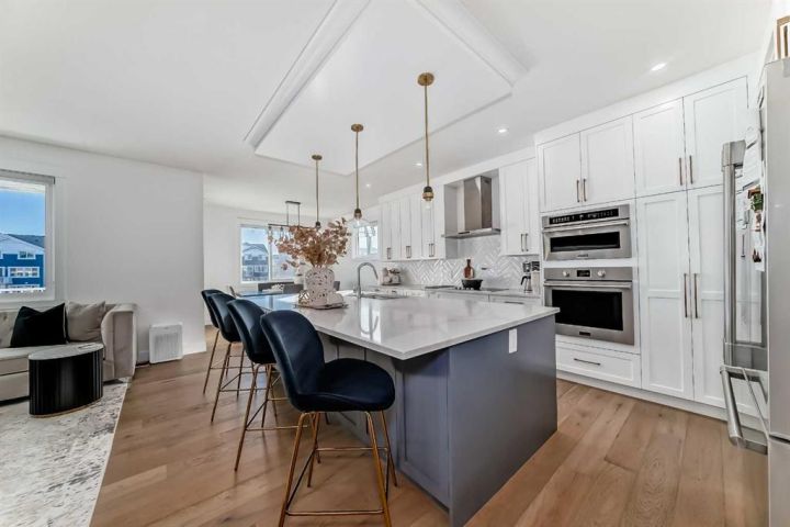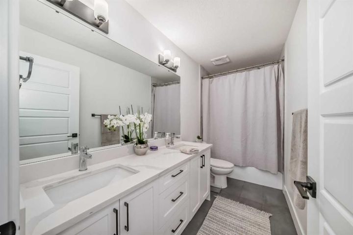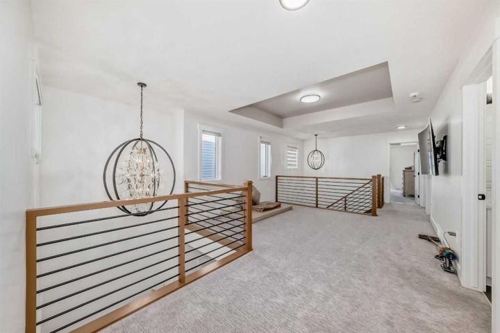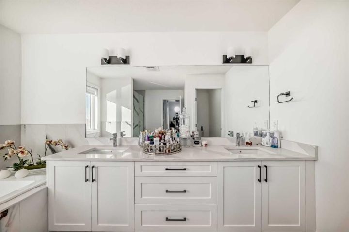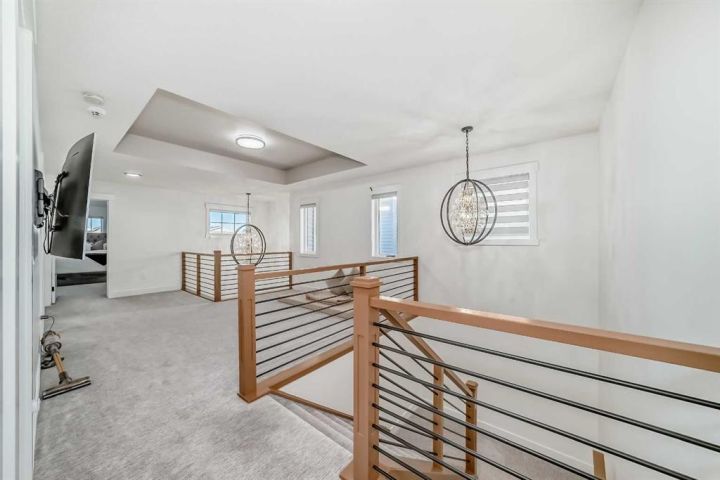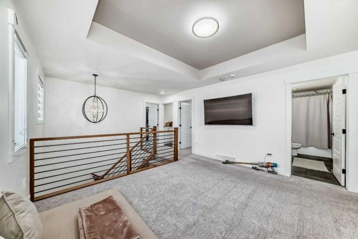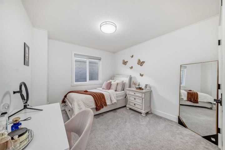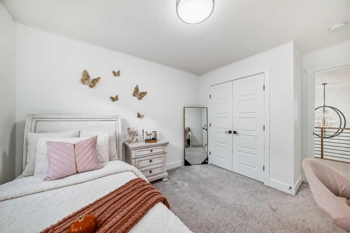 Welcome to this stunning, fully upgraded 2,761 sq.ft. home, where modern luxury meets everyday functionality. From the moment you enter, you’ll be captivated by the natural color palette, premium upgraded flooring, and open-concept floor plan that flows seamlessly throughout. The main floor living area is a true showstopper — featuring a spacious foyer and a bright living room accented by a beautiful fireplace and an impressive open-to-above design that fills the space with natural light, creating a grand and inviting atmosphere. At the heart of the home is the fully upgraded chef’s dream kitchen, complete with top-of-the-line appliances, sleek finishes, and generous quartz counter space — perfect for family meals or entertaining in the spacious dining area with access to the south-facing balcony. A stylish 2-piece powder room completes the main level. Upstairs, you’ll find four spacious bedrooms, including two master suites, each with its own luxurious ensuite bathroom and walk-in closet, designed for comfort and privacy. With a total of three bathrooms on the upper floor, this home is ideal for large or multi-generational families. The upper level also features a private balcony off the primary bedroom, perfect for enjoying morning coffee or peaceful evening views, along with a spacious bonus room and a convenient laundry area. Additional highlights include a roughed-in garage heater, a whole-home water filtration system, and a walk-out basement that opens to a private yard backing onto a scenic pond and walking path — offering the perfect blend of nature and luxury. Every inch of this home showcases thoughtful design, high-end finishes, and timeless style — a truly exceptional property that defines modern living at its finest. Located in a newer, family-oriented community, this home is just minutes away from a wide range of amenities including shopping, parks, schools, and so much more still to come.