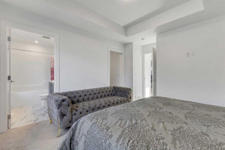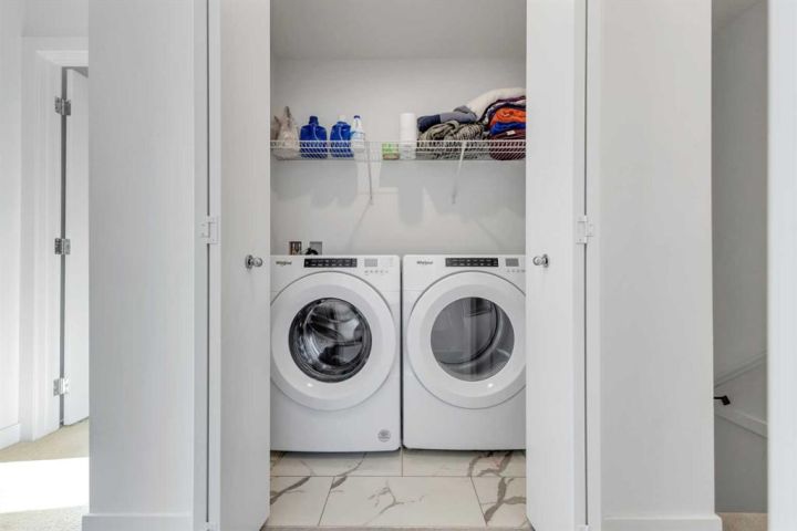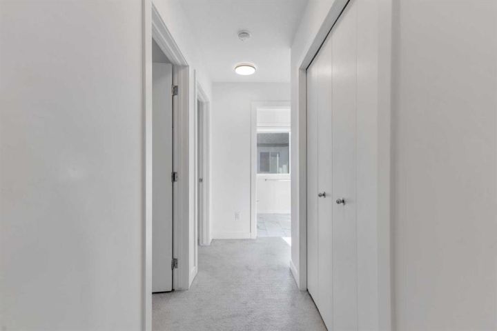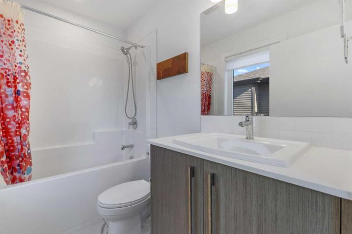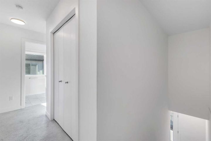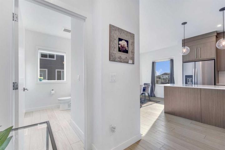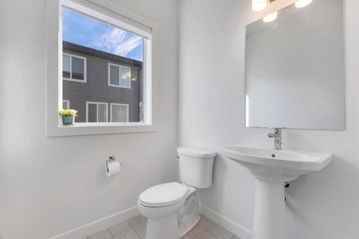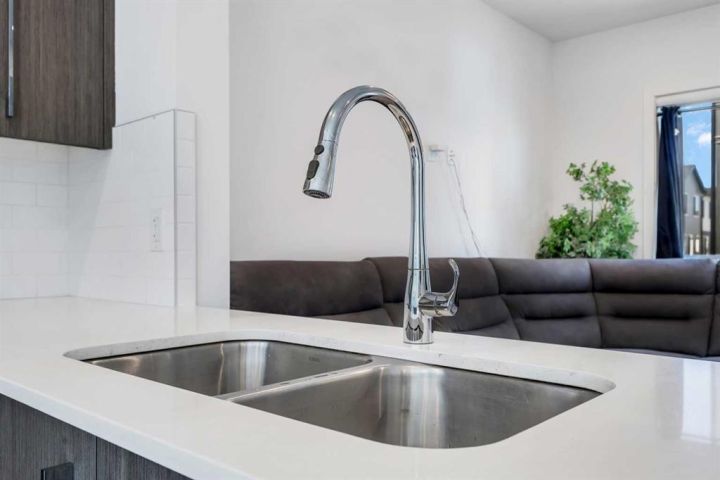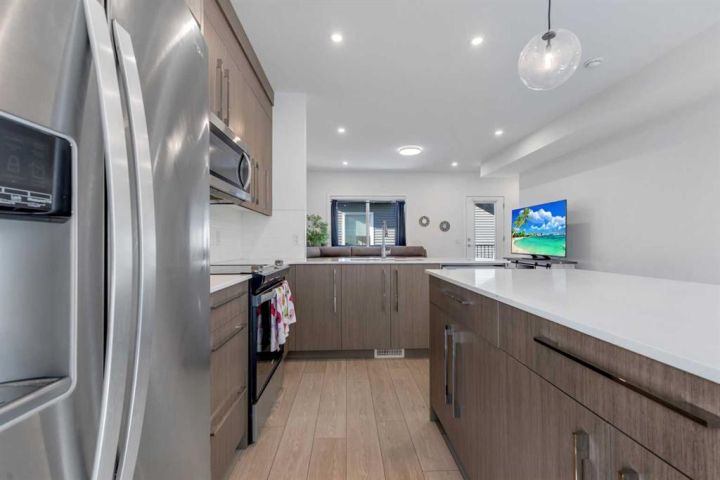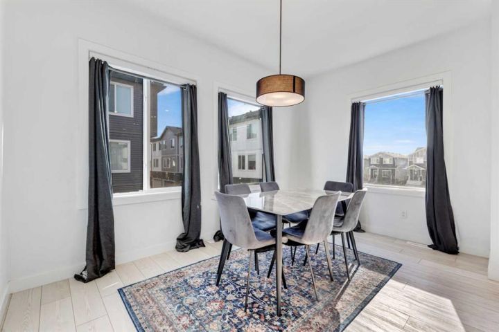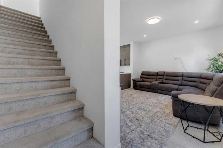 Experience stylish, low-maintenance living in this beautifully designed 4-bedroom, 2.5-bath end-unit townhome with an attached double garage. Perfectly situated just 20 minutes from downtown Calgary and 5 minutes from the new Costco, this home offers the perfect blend of convenience, comfort, and modern design. Main Level – Open Concept Elegance The bright and spacious main floor features an open-concept layout with large windows, sleek vinyl flooring, and designer lighting. The gourmet kitchen is a chef’s dream, showcasing quartz countertops, a tile backsplash, full-height cabinetry, stainless steel appliances, and a central island with dual sink — ideal for entertaining or family gatherings. The adjoining living and dining areas flow seamlessly onto a large front balcony with a gas line for BBQs, perfect for outdoor relaxation. Upper Level – Comfort & Convenience Upstairs, the primary suite features a walk-in closet and a private ensuite. Two additional bedrooms share a modern full bath, while the laundry room with a full-sized Whirlpool washer and dryer adds everyday convenience. Lower Level – Flexible Living Space The entry level includes a versatile fourth bedroom or home office, along with access to the attached double garage, mechanical room, and additional storage. Community & Location Located in the award-winning Truman-built Aberdeen Towns, this master-planned community offers future amenities including new schools, parks, and lifestyle features — all along the scenic shores of Chestermere Lake. Enjoy easy access to Walmart, Costco, restaurants, schools, and parks, making it an ideal home for families and professionals alike. Your opportunity to own in one of Chestermere’s most sought-after communities awaits. Contact your Realtor today to book a private showing!