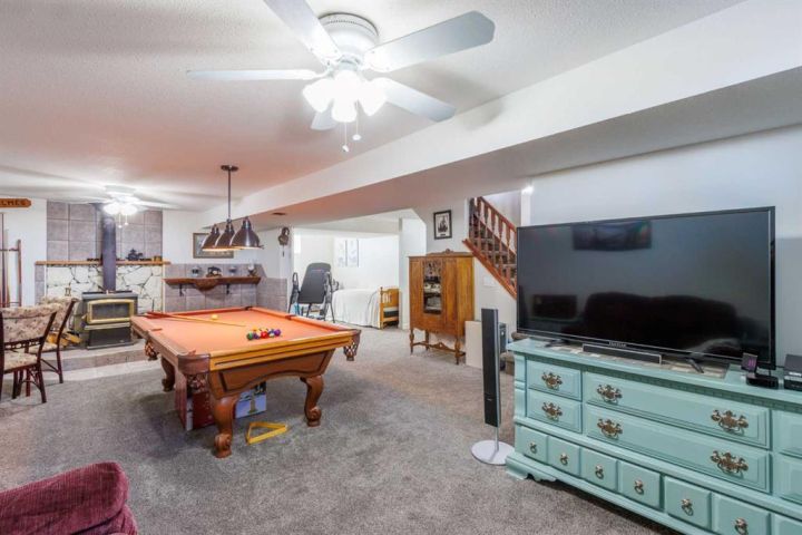 Originally built in 1917, this iconic home, affectionately known as “The Big House,” was moved to its current location in 1995, where it was completely redone from the studs out. Electrical, plumbing, insulation, and, most importantly, a new foundation were all added at that time, giving the home the best of both worlds; modern reliability and historic charm. Over the years, the home has continued to evolve, with updated windows, doors, roof, and appliances providing comfort and peace of mind for years to come. Upstairs, what was once a five-bedroom layout has been reimagined for today’s lifestyle, featuring two bedrooms, a cozy family room, a full four-piece bathroom, and a primary suite with a separate walk-in closet and dressing area. Step out onto the upstairs balcony and take in the breathtaking view as the sun sets over the Rocky Mountains. The main floor is warm and welcoming, offering hardwood floors that lead you through to the kitchen and dining room, a bright kitchen with island seating, a dedicated dining area, and a comfortable living room filled with natural light. Step through the dining room doors to your private backyard oasis—perfect for summer evenings and quiet mornings. Downstairs, you’ll find the ideal space for entertaining with a large games room anchored by a wood-burning fireplace, plus one additional bedroom, a flex room that could easily be converted back into a bedroom, and plenty of storage. Outside, the property offers 4.99 acres of private, uninterrupted living with mountain views, cross-fencing for horses or livestock, and gated access for ultimate privacy. The indoor pool room, finished in cedar, provides the perfect place to stay active year-round or to entertain the kids and grandkids. A charming kids’ cabin tucked away on the property has been a cherished retreat during family gatherings—an inviting spot for adventure, imagination, and memories that will last a lifetime. For hobbyists or collectors, the property offers unmatched workspace with an oversized triple garage, a 2,724-square-foot shop, and a 3,303-square-foot heated shop—perfect for projects, storage, or a home-based business. This is more than a home. It is a legacy property that has turned heads for generations and is now ready for its next chapter.
