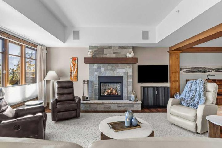 "Top of the World" premiere penthouse, perched at the highest elevation in all of Canmore. This single-floor residence spans 2,819 sq ft and offers truly unmatched panoramic mountain vistas from every window and its expansive outdoor spaces. Entertain or relax on the south-facing primary balcony, or step out from either of the two primary suites onto a second private balcony. The gourmet kitchen, featuring quartz countertops and a walk-in pantry, offers a culinary experience where the majestic Three Sisters mountains serve as a breathtaking backdrop. The first of the two primary retreats is a luxurious haven, boasting a corner gas fireplace, a dedicated sitting area, a walk-in closet, and a spa-inspired ensuite. The second primary retreat is equally impressive. Completing this exceptional layout are two additional rooms—ideal for guest bedrooms or private offices with a three-piece bath. Includes two heated underground parking stalls and massive storage.