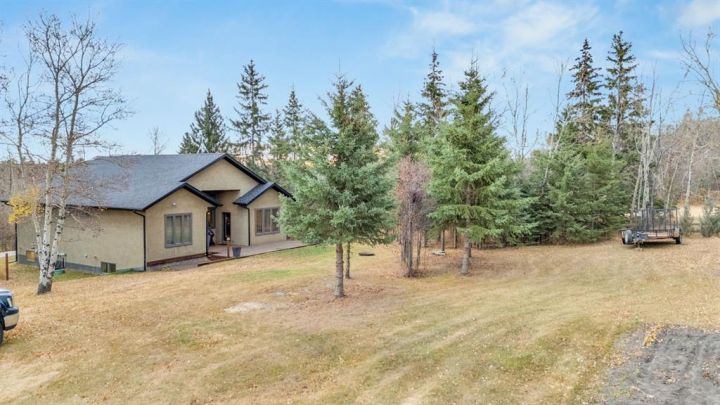Beautiful acreage with all the bells and whistles! This fully finished home offers granite counters, a gas cooktop, and central air conditioning. The open main floor features a bright kitchen and living area with 2 spacious bedrooms. The finished basement adds 2 more bedrooms and a large family room. Enjoy both a double attached and double detached garage, plus a gas BBQ hookup and private outdoor space. A perfect blend of country living and modern comfort, just minutes from town! Perfectly situated close to the highway 2 corridor and between Lacombe and Ponoka.