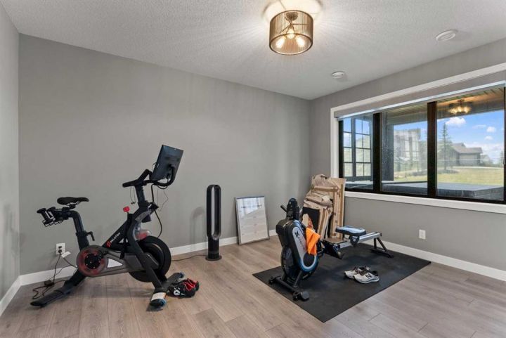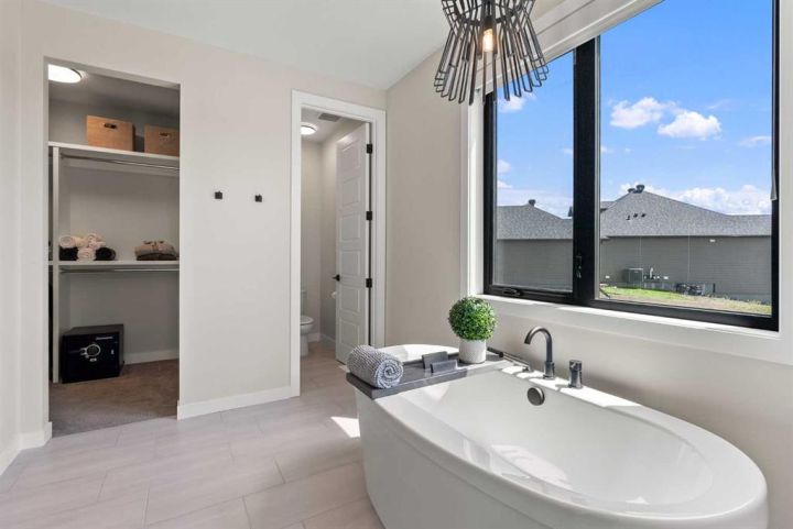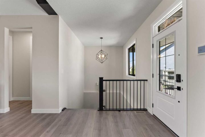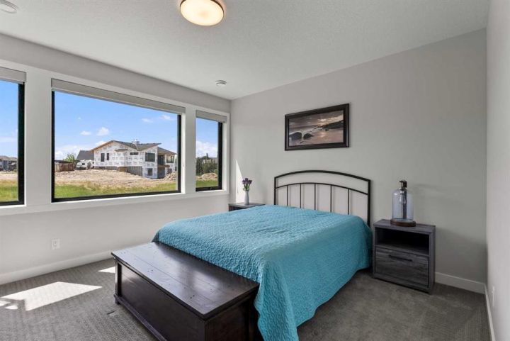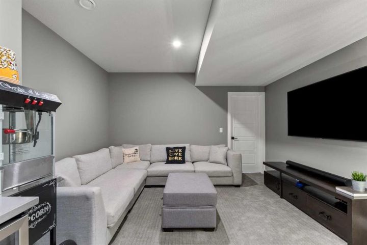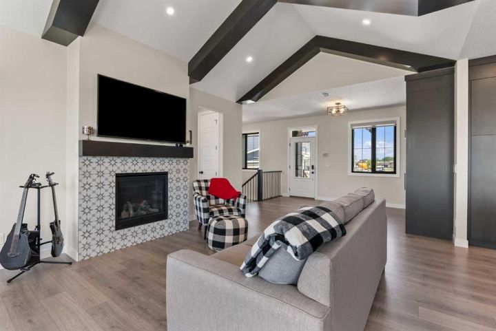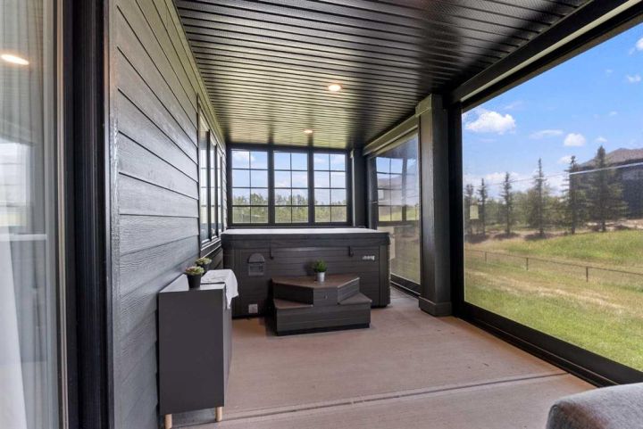 Discover this beautiful home just outside of Cochrane in Monterra. Offering nearly 3,400 sq ft of thoughtfully developed living space on a generous 0.45-acre lot, it delivers the top-tier essentials buyers crave. The main floor impresses with an open, airy design featuring vaulted ceilings that create a bright, inviting atmosphere. The spacious kitchen boasts a large island and soft-close cabinets, flowing seamlessly into the dining and living areas—ideal for hosting family and friends. The primary suite is a private sanctuary, with an elegant ensuite that includes a soaker tub, shower, and dual sinks, complemented by a large walk-in closet with built-in organizers. Convenience is key with a well-appointed laundry room located along the corridor to the heated, insulated triple garage. Step outside onto expansive decks—12x28 feet on both levels—that are perfect for outdoor entertaining. The lower deck features a hot tub, offering a relaxing retreat with stunning mountain views. Throughout the home, you’ll find custom built-ins, including a dedicated office with custom cabinetry and a built-in pantry for ample storage. The finished basement provides additional living space with two bedrooms, a spacious rec room that opens to a large patio, and a versatile three-season room equipped with retractable screens to enjoy the outdoors in comfort. This property combines luxurious finishes, practical design, and breathtaking natural scenery—making it an exceptional place to live and entertain.