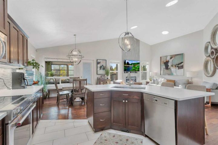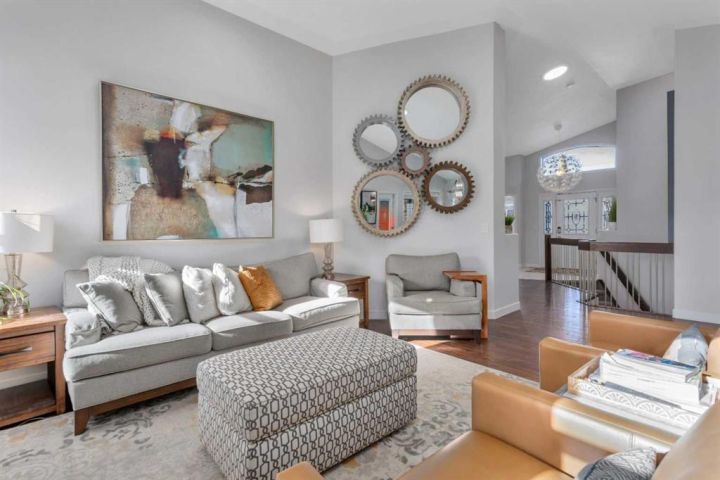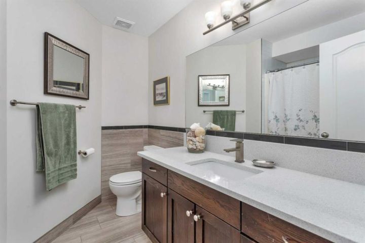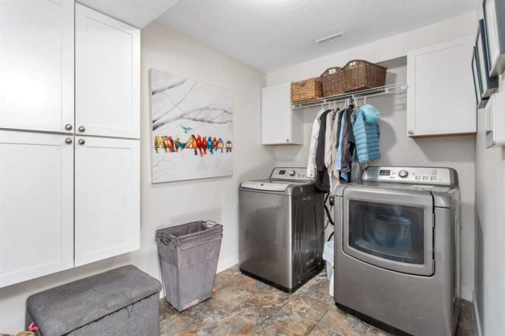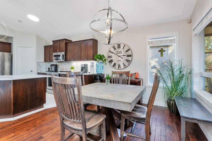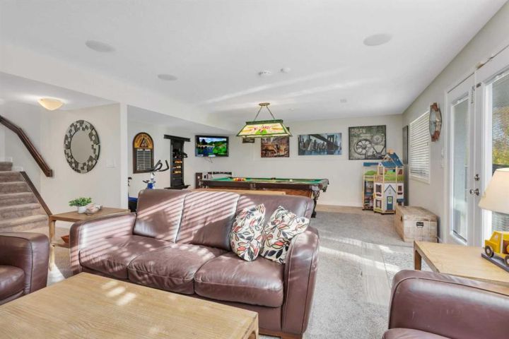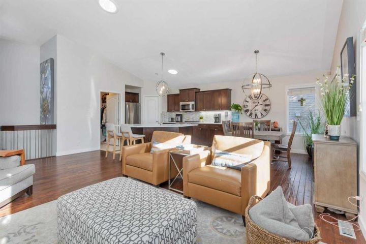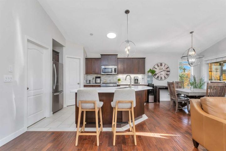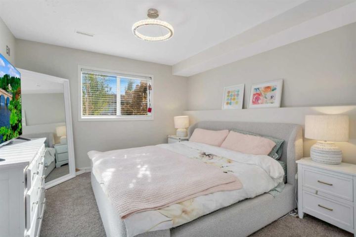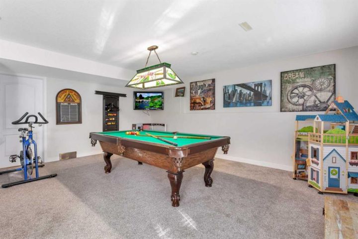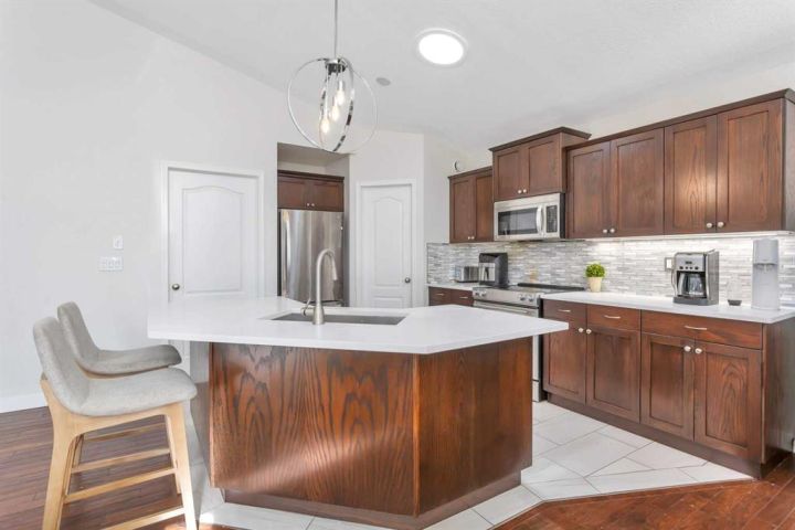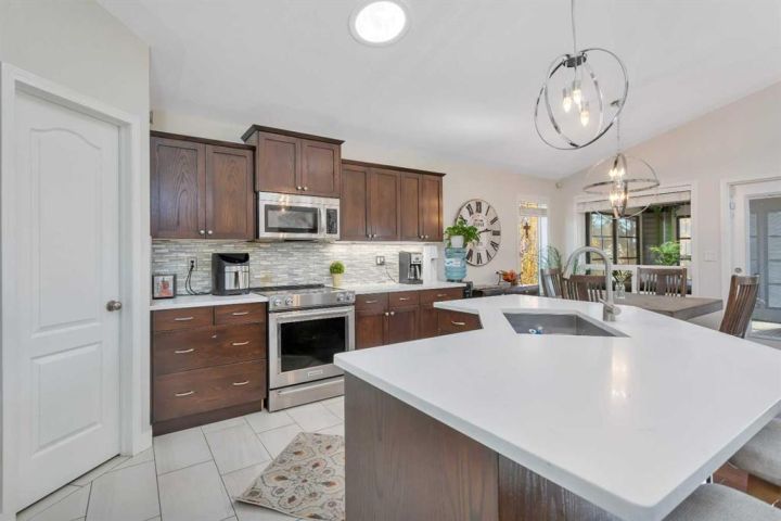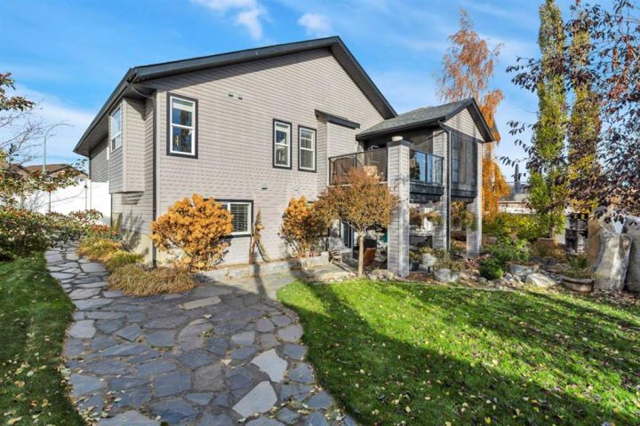 Welcome to your family’s next chapter in this beautifully developed walk-out bungalow, perfectly situated in a quiet cul-de-sac. With 4 bedrooms, 3 full bathrooms, and 1,419 sq ft of well-planned living space on an impressive 11,000 sq ft lot, this home offers a perfect blend of comfort, functionality, and outdoor beauty. Step inside to an open and inviting main floor featuring handscraped hardwood floors, quartz countertops, and a freshly painted interior filled with natural light from multiple skylight tubes. The heart of the home is the bright living area centered around a marble fireplace feature, creating a cozy space for family nights. Just off the dining area, the 3-season sunroom with Duradeck flooring is perfect for relaxing mornings or evening chats while enjoying the serene backyard view. The southwest-facing backyard is a true retreat, complete with an outdoor fireplace, hot tub, and a stunning rock waterfall surrounded by flagstone walkways and stone steps. With over 100,000 lbs of stonework, this outdoor space offers beauty, privacy, and plenty of room for kids to play or adults to entertain. The fully finished basement features in-floor heating, a spacious family room, wet bar, and pool table, making it an ideal hangout for all ages. Both the front(23'1x23'7) and rear (28'9x29') garages are heated and have epoxy flooring, while the rear garage adds a wood stove with marble backdrop for warmth and character. Additional features include central air conditioning and a water softener for everyday comfort. Close to schools, playgrounds, shopping, and scenic walking trails, this exceptional Inglewood home is perfect for families seeking space, style, and a welcoming community to call home.