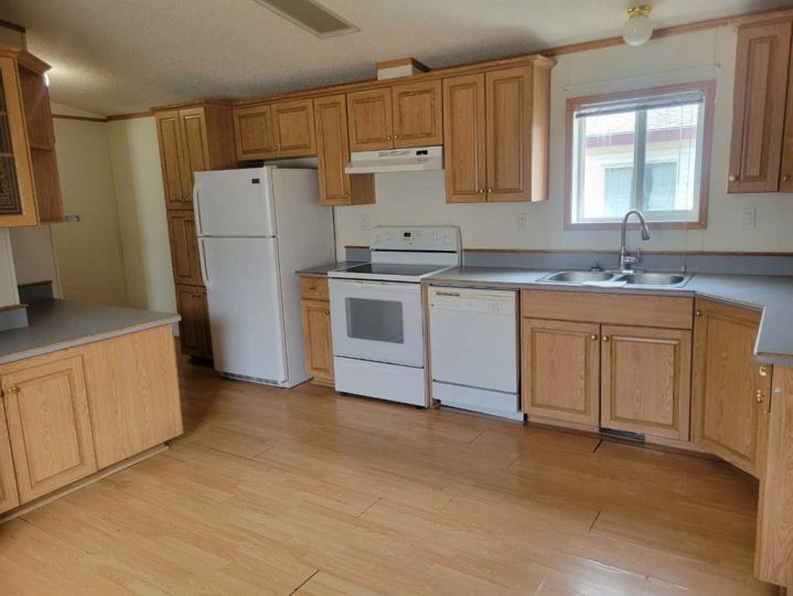Now offering for sale at $194,900!! Discover this charming 2004 Sri Homes single wide mobile home in Creekside, ready for new owners! Well-maintained and spacious, this open-concept home features vaulted ceilings, loads of cabinets, and ample countertops in the kitchen—perfect for cooking and entertaining. The large master bedroom includes a big tub and a separate toilet area, along with plenty of storage. The main living area offers laminate flooring, while two additional bedrooms and a full bath are located on the other end, ideal for guests or family. The property provides parking for 2 vehicles at the front and 2 more in the rear, with plenty of room to build a shed or garage. Enjoy relaxing on the nice-sized deck. Sold as-is / Offers can be conditional.