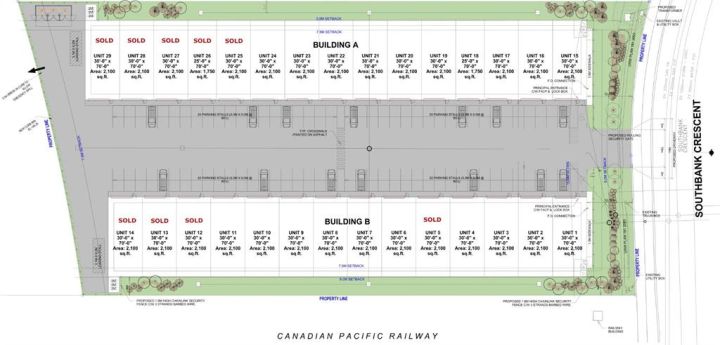 Welcome to THE GROTTO, Okotoks’ most exciting new storage and business complex, designed for enthusiasts, entrepreneurs, and professionals who demand more than just space. Whether you’re storing your prized vehicles, running a contained business, or creating your ultimate personal retreat, The Grotto delivers unmatched quality, comfort, and convenience. Standard Features: Each unit offers in-floor heat powered by a tankless combi boiler for endless hot water, a 100-amp panel (upgradeable), and plumbing rough-ins for a bathroom and shop sink. Enjoy oversized insulated overhead doors (18’ wide x 14’ tall) with motorized openers and privacy windows for both light and security. Inside, find modern LED lighting, a variable-speed ceiling fan, floor drain, and metered utilities (gas, water, and power). Access your bay through a 3’ insulated walk-in door featuring WiFi, Bluetooth, and keypad entry. Safety is top priority with fire sprinklers throughout. Mezzanine-Expand your space with mezzanines up to 840 sq. ft., offering 10 ft ceilings, large opening windows, and 13’8” clearance underneath, perfect for RVs or lift systems. Ideal for a golf simulator, office, or lounge area, it’s your space, elevated. Built to industrial standards with 6” reinforced concrete floors (rated for semi-truck weight), steel and IMP construction, and R40 insulated walls and ceilings. Each bay includes future-use wall vents (for HRV or A/C), large windows for natural light, and concrete aprons for easy access. The Complex offers a brand-new gated development features 29 premium bays ranging from 1,750 to 2,100 sq. ft., all with 24 ft white smooth panel ceilings and 24/7 secured access via remote entry app and FOBs. The site includes a large paved, fenced courtyard, 6-camera security system, LED exterior lighting, and professionally landscaped low-maintenance grounds. High-speed internet available. Snow removal and landscaping included. With completion Summer 2026, this gives you time whether you’re creating the ultimate man cave, luxury storage bay, or secure business shop, The Grotto is where passion meets performance. Limited availability, let's secure your unit today!