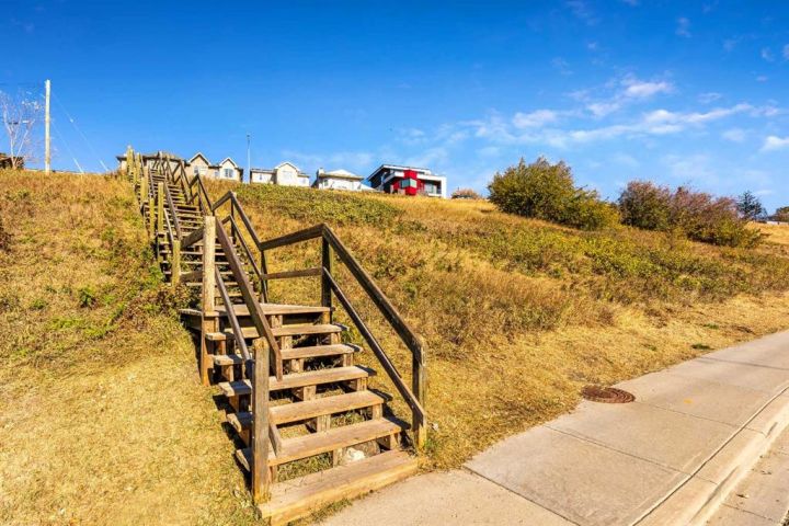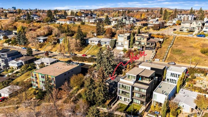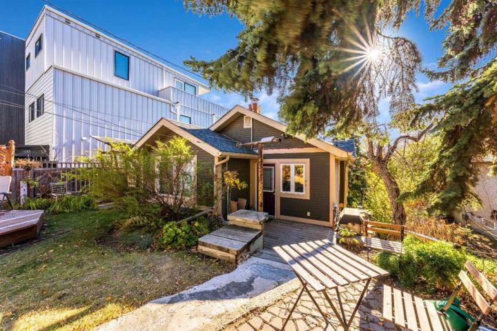 Inner city living in a Bridgeland character home has come knocking! From the moment you step off the sidewalk to come up the walk you’ll be wowed by this charming home, a perfect balance of indoor space and a relaxing outdoor oasis. This home was renovated to the studs in 2004 and expanded so the major components are to current standards. From the landing at the front entry of this bilevel, you’ll find light-filled space after light-filled space. The upper living room offers a view toward the SW over the city skyline. You’ll appreciate the spacious dining room which is perfect for family get-togethers and showcases charming original details like elegant wooden window casings. The modern style kitchen offers lots of counter space and storage – you’ll love the gas range and if you like to BBQ you can step out the back entrance onto a cozy porch and nearby patio which features a relaxing pond and plenty of privacy. The main level offers two well-proportioned bedrooms and a 4-piece bath. Explore the lower level and find a family room with large windows and a city view. There’s another spacious bedroom and 3-piece bath as well as a laundry room and a mechanical/storage room that has a workbench and space for additional storage. The electrical panel was redone in 2004 when the addition/down to studs renovation was completed. The roof was redone in 2019 and the HWT in 2022. The property has an inground irrigation system and pond and features some lovely landscaping, unique trees and a lot of privacy. There is no alley behind the house, it’s a quiet street and there’s a large park behind the house. The home is charming and functional and offers a twist on inner city living due to its secluded setting on a sloping lot with views. There is also a single garage sized workshop/storage shed at the top of the hill. The lot is approximately 11m wide by 42m deep.