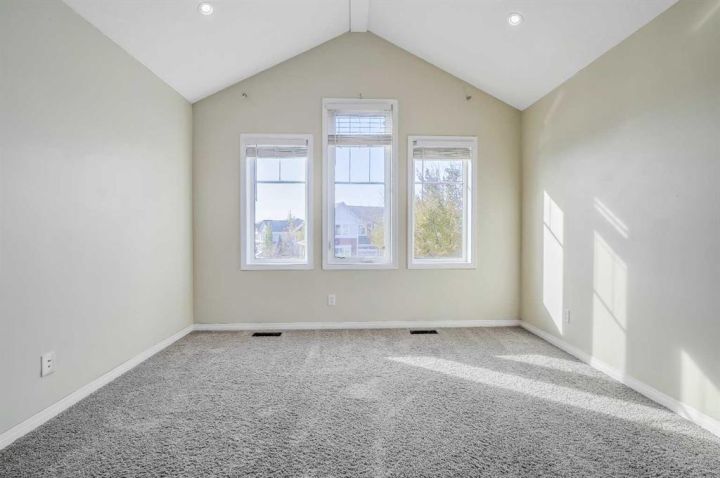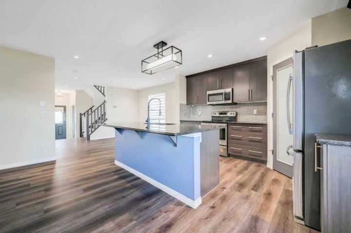 Not a condo property and no condo fees! Own your land with this updated 2 storey walkout home in Westmere under $500K! Modern open plan with spacious kitchen & many bright windows. Unobstructed views over the prairies behind and complete privacy. Stainless steel appliances, granite countertops & central island, with ample cabinet space & corner pantry. Upgraded durable vinyl plank flooring throughout the main level. 3 generous bedrooms up including oversized primary bedroom with 2 full bathrooms & great storage. Front bonus room rarely available in a duplex or townhome style layout! Soaring vaulted ceilings & ample room for a media/family room. Convenient second floor laundry. Undeveloped walkout basement with separate entrance leading to private, well sized rear yard. All the rooms, size, & amenities of a large more expensive home in an affordable turnkey package! Fully insulated attached garage with additional parking pad out front. Enjoy the rich amenities of Westmere including a winding network nature focused pathways and only 1 block walking distance to Chestermere Lake! One of the closest locations to all the amenities, shops, restaurants, & schools of Chestermere with a quick escape on the Trans-Canada to Calgary. Immense value in Chestermere!
