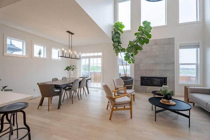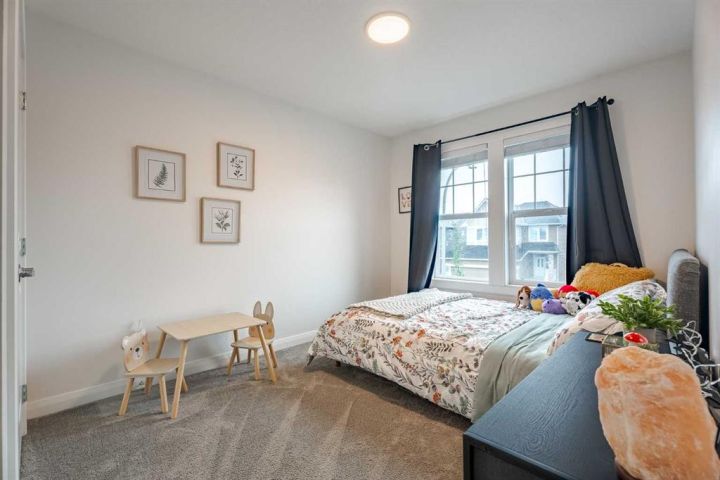 Your dream home awaits in this stunning 3-bedroom, 2-storey located in the desirable community Ravenswood. From the moment you step into the spacious front foyer, you'll notice the quality of this Broadview-built home. Constructed in 2018 and meticulously maintained, it still shows like new, truly a 10/10! Wide plank engineered hardwood guide you through the open concept main level, where you will discover the heart of the home; a beautiful kitchen, designed for both everyday living and entertaining. Featuring an island with seating for 5, quartz counter tops, rich dark maple cabinetry, and classic white subway tile backsplash. Equipped with a five-burner gas range, stainless steel KitchenAid appliances, a built-in microwave, and a convenient walkthrough pantry. The main floor boasts 9-foot ceilings and a stunning vaulted living room filled with natural light, thanks to the large windows that frame the cozy gas fireplace. Sliding glass doors open to the back deck, ideal for indoor/outdoor entertaining, complete with a fully fenced yard and thoughtful landscaping. The mudroom/laundry room connects the main floor to the oversized 24x24 double attached garage and this floor wouldn’t be complete without a 2-piece powder room. Upstairs, you will find a spacious bonus room, 3 generously sized bedrooms, including a serene primary suite with a walk-in closet and luxurious 5-piece ensuite. A 4-piece bath also serves the additional bedrooms on this floor. The stairs to the basement are already finished, and the remainder is ready for your creative vision. This home has it all with room to grow! Ravenswood offers excellent walkability, convenient access to shopping and amenities, and easy access to highway 2, just a short 20-minute drive to Calgary. This home is ready to welcome you!