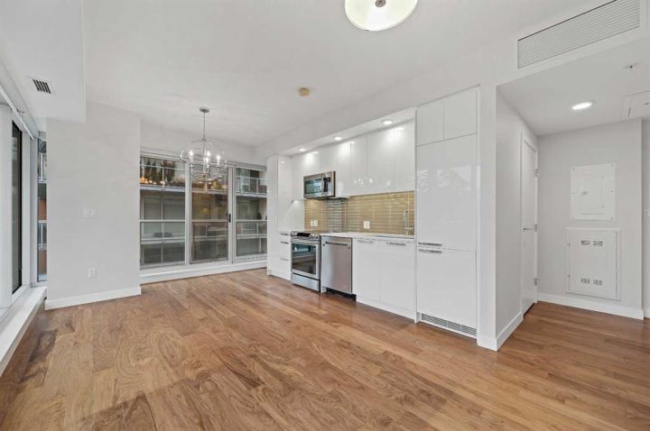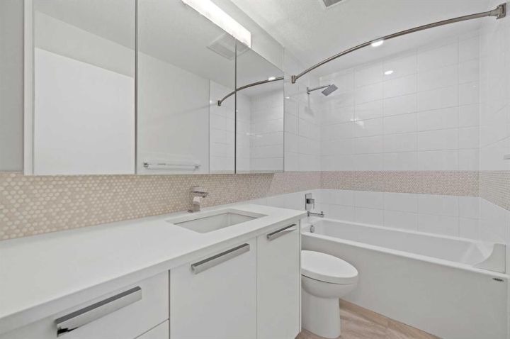 Welcome to Ezra on Riley Park, a truly unique address in the heart of Hillhurst, where stylish city living meets the serenity of nature. Nestled along the edge of the iconic Riley Park, this sophisticated 2-bedroom, 2-bath condo offers a rare opportunity to experience the best of inner-city Calgary—with breathtaking views, upscale design, and unmatched walkability. From the moment you step inside, you'll feel the difference. A spacious foyer welcomes you with beautiful textured engineered hardwood flooring, leading you into a thoughtfully designed open-concept living space filled with natural light streaming in through floor-to-ceiling windows. This home is perfectly framed by views of the lush greenspace just beyond, creating a seamless connection between indoor luxury and outdoor beauty. The kitchen and living area blend harmoniously, surrounded by oversized windows and double French sliding doors that open onto an expansive wrap-around balcony—an incredible outdoor living space measuring over 59 feet in total length, ideal for morning coffee, evening cocktails, or relaxing in your private oasis above the park. The modern kitchen boasts sleek stainless steel appliances, stylish white cabinetry with fridge panels to match, elegant glass tile backsplash, durable and beautiful silgranite sink and quartz countertops for a clean, contemporary finish. Both bedrooms are bright and inviting, featuring built-in closet organizers and a soft, modern color palette. The primary suite enjoys its own wing of the wraparound balcony and a private 4-piece ensuite, complete with classic tile flooring, full tile shower and tub combo and quartz vanity with undermount sink and built-in vanity. The second full bathroom, located near the entry for guests or family, mirrors the home’s elevated aesthetic. You'll also appreciate the in-suite laundry room, central air conditioning, and ample storage throughout. Additional highlights include a titled underground parking stall in a secure, heated parkade, assigned storage locker, access to a premium fitness centre and chic party room with your very own wine locker, pet-friendly and impeccably maintained building. Beyond your doorstep is the best of Calgary’s urban lifestyle. Riley Park as your backyard, complete with a cricket pitch, wading pool, new playground, and the Senator Patrick Burns Rock Garden. Steps from the Hillhurst Sunnyside community centre with tennis courts, weekly farmer’s markets, and live music. Easy stroll to the Kensington shopping district, Bow River pathways, SAIT, Jubilee Auditorium, cafés, transit, and the downtown core Ezra on Riley Park is more than a condo—it’s a lifestyle of tranquility, convenience, and contemporary charm in one of Calgary’s most vibrant, connected neighborhoods. Don’t miss this rare opportunity to live stylishly above the park—schedule your private showing today.