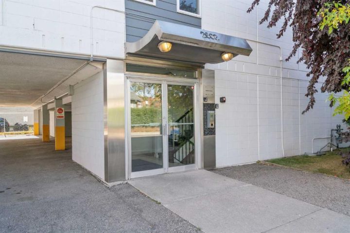 Welcome to this spacious 2-bedroom, 1-bath unit that offers over 860 sq. ft. of thoughtfully designed living space in one of Calgary’s most vibrant inner-city communities. Located on the top floor of a solid concrete building, this corner unit is filled with natural light from multiple exposures and enjoys downtown views from its northeast-facing balcony. Inside, the open-concept kitchen is both stylish and functional, featuring stainless steel appliances including a new Miele dishwasher, espresso cabinetry, modern hardware, soft-close drawers, a breakfast bar, and plenty of cabinet and counter space. The kitchen flows seamlessly into the dining area and living room, where large windows brighten the space. Tile flooring flows throughout for easy upkeep, and the bedrooms are lined with warm cork. From the living room, French doors open to the second bedroom that can be used as a home office, complete with cork flooring and a closet. The spacious primary bedroom offers a large closet and sits next to 4-piece bathroom with soaker tub and a full-size LG washer/dryer combo, adding everyday convenience. There’s also a deep in-unit storage closet, perfect for keeping your belongings organized. Additional shared storage is available in the building. This pet-friendly condo welcomes your furry friends (no size restrictions, board approval required), and nearby off-leash dog parks make it easy to get outside and explore. Covered parking is included, with the option for additional permit parking out front. Located in Bankview, a hidden gem just minutes from downtown, this home is surrounded by unique streets and plenty of parks. Local cafés, restaurants, and shops are all within walking distance—plus a Starbucks just steps from your door. You’re also conveniently close to both 17th Ave SW and Marda Loop, giving you easy access to everything the city has to offer. This condo combines thoughtful design, modern updates, offering a comfortable and vibrant space to call home in the heart of Calgary. Book your showing today.