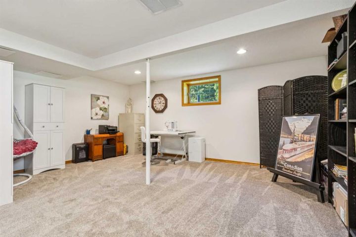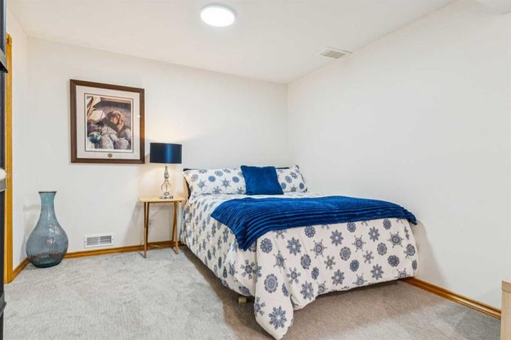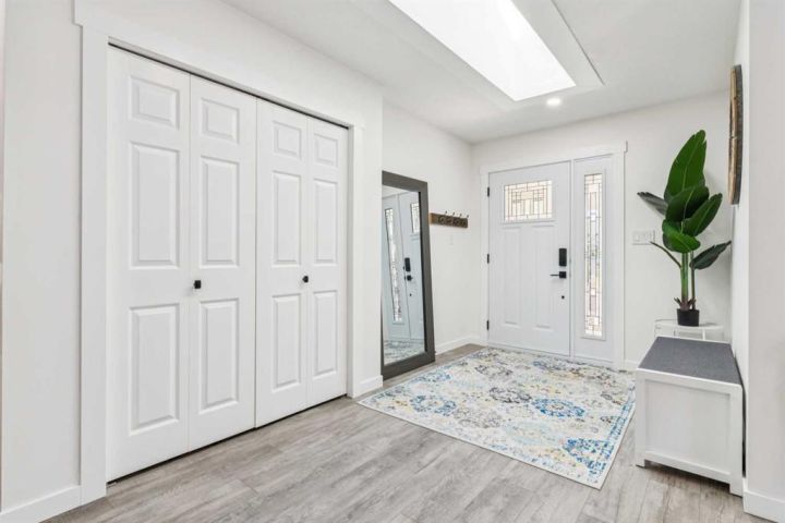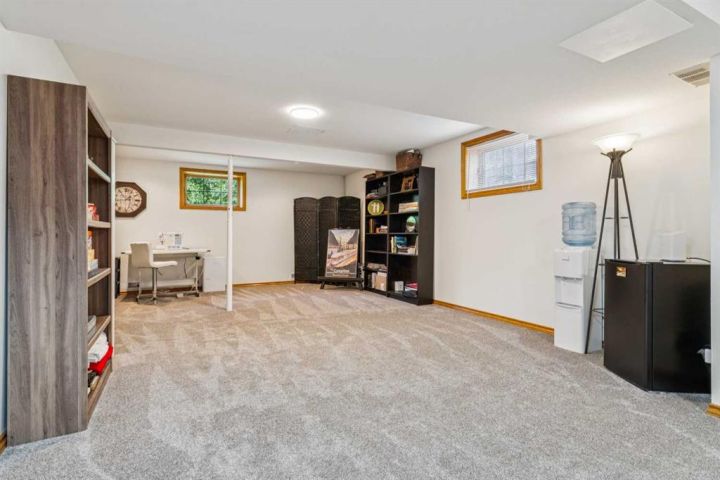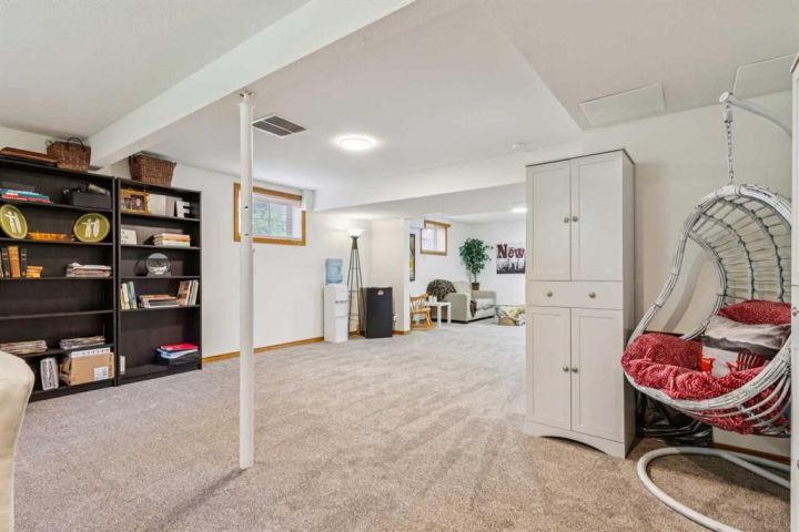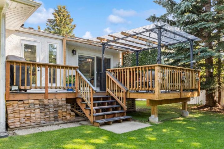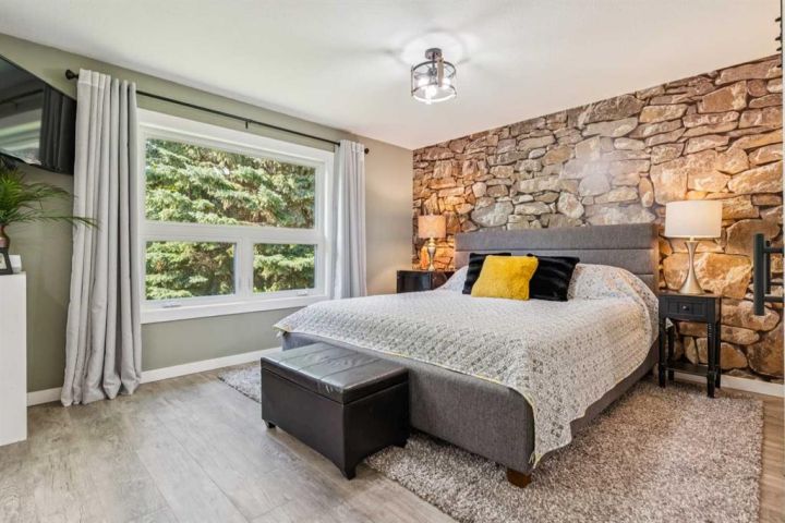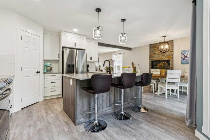 PLEASE SEE iNTERACTIVE VIDEO. Imagine waking up every day to the serenity of a West-facing backyard overlooking a beautiful treed reserve—one of the most desirable settings in all of Olds, and available for under $650,000! This home has been extensively renovated over the past two years, offering the look and feel of a brand-new property. Step inside to a welcoming foyer with a new skylight above and luxury vinyl flooring that flows seamlessly across the main level. All windows have been upgraded to energy-efficient triple pane. The chef inspired kitchen with stainless appliances is a showstopper, featuring granite countertops, soft-close cabinetry, a corner pantry, gas fireplace, and a massive island—perfect for entertaining. Oversized patio doors lead you to a large deck and private West backyard, where the reserve creates a peaceful, park-like setting to enjoy with family and friends. The primary retreat is tucked at the back of the home with tranquil views, a spa-inspired ensuite with double sinks and a soaker tub, and a huge walk-in closet that conveniently includes laundry. A second bedroom and full bathroom complete the main floor. Downstairs, the fully finished lower level offers a spacious recreation room ideal for movie nights or games, plus two additional bedrooms, a full bathroom, and even a summer kitchen. There’s direct access to the garage from the basement—a thoughtful bonus for multi-generational living or guests. Recent upgrades also include shingles, mechanical systems, water softener, carpet, insulation in the attic, and more, ensuring peace of mind for years to come. Truly a rare find in an unbeatable location—just move in & Enjoy!