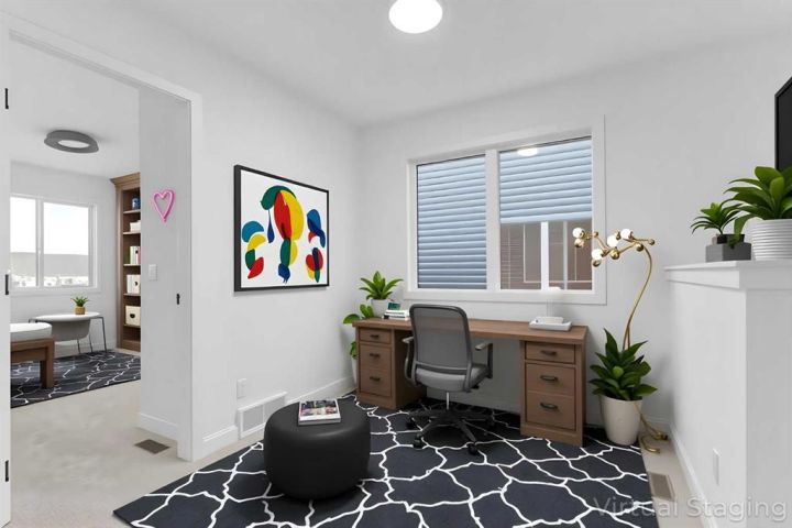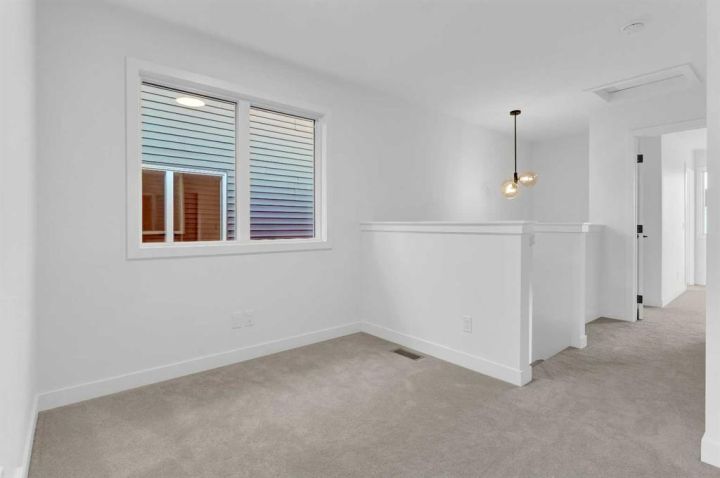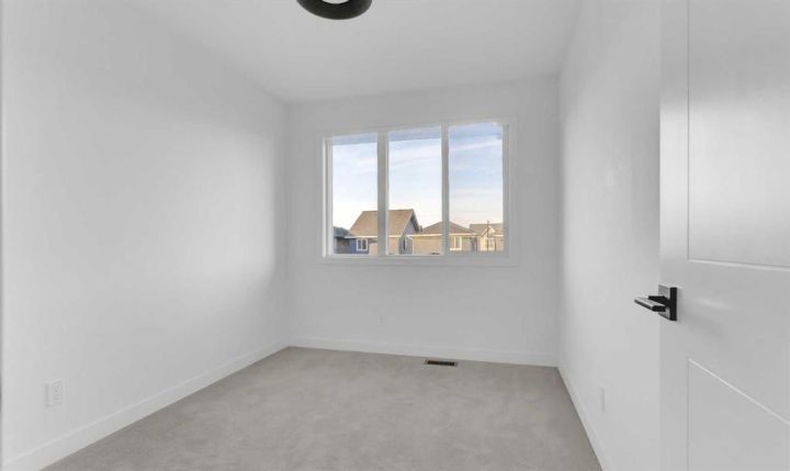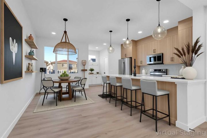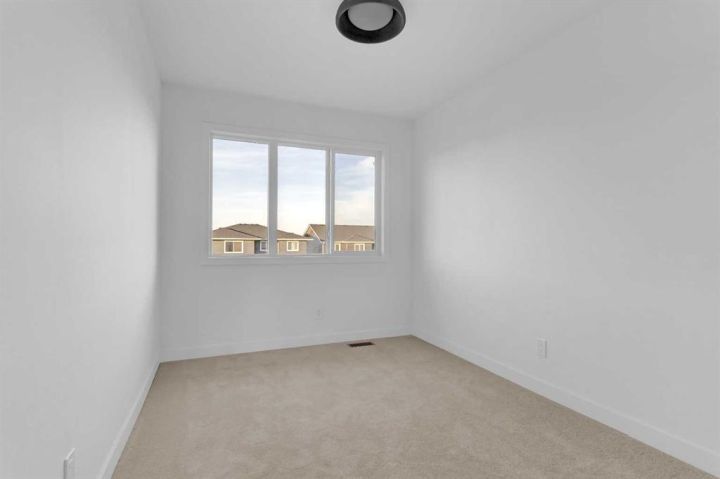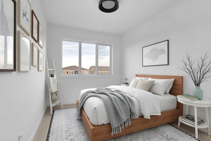 No Condo Fee | Side Entrance to Basement | End Unit | Double Garage .Welcome to this beautifully designed end unit townhome with separate side entrance to the basement, in the dynamic and growing community of Cobblestone in Airdrie! This stunning unit in a modern tri-plex perfectly blends style, comfort, and functionality—ideal for families, first-time buyers, or down sizers seeking a spacious, low-maintenance lifestyle. Featuring 3 bedrooms, 2.5 bathrooms, and 1,520 sq. ft. of thoughtfully designed living space, this brand-new home offers an open-concept main floor with 9’ ceilings and seamless flow between the kitchen, dining, and living areas—perfect for everyday living and entertaining. The contemporary kitchen is sure to impress with quartz countertops, a central island, and sleek cabinetry, providing ample prep space and casual dining options. Upstairs, the primary suite serves as a peaceful retreat with a private ensuite and generous closet space. Two additional bedrooms are ideal for kids, guests, or a home office, while the convenient upper-level laundry adds everyday practicality. Enjoy the benefits of a detached double garage (to be built by Builder)and paved back lane access. Located in the sought-after Cobblestone community, you’ll love the proximity to schools, parks, shopping, and major routes—making it easy to commute to Calgary or escape to the mountains on weekends. Don’t miss your chance to own this stylish, move-in-ready home in one of Airdrie’s exciting new neighbourhood. Book your private showing today!