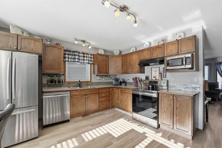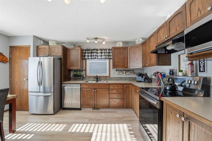~Step inside this 4-bedroom, 3-bathroom home that perfectly blends comfort, style, and convenience. Located just across from a children's park and close to everything you need, this home is ideal for families and everyone who loves being a part of a VIBRANT community. BEAUTIFUL QUIET CLOSE LOCATION!!! Fully developed 2 storey with fenced yard and a garden shed for additional storage. This beautiful home has been well taken care of, original owner, and nonsmoking. Kitchen is very spacious with HARDWOOD CABINETRY, and stainless-steel appliances. Big windows on both upper and main levels that fill this home with tons of natural light! South facing back yard with maintenance free fencing. Upstairs are 3 bedrooms, master in front and the others are in back, for even more privacy! The fully finished lower level of this home is more than just a basement its an incredible extension of your living space! You'll find a large, inviting bedroom, perfect for guests or teens, or a private home office. The modern 3-piece bathroom and convenient in-suite laundry make this level completely self-contained and practical. The highlight~ a SPACIOUS FAMILY room that's ideal for movie nights, a cozy hangout zone or even a home gym. With its generous layout and warm finishes, this basement feels open, bright, and welcoming- a true retreat within your home. Pets are WELCOME HERE!!!