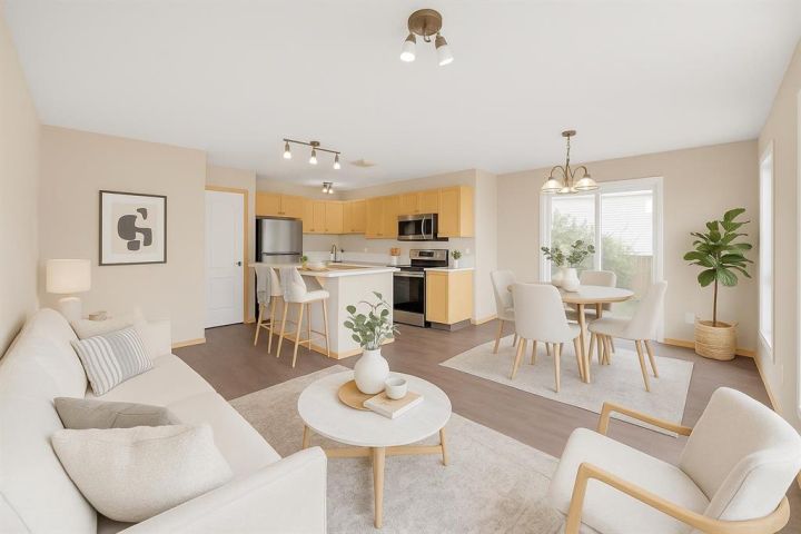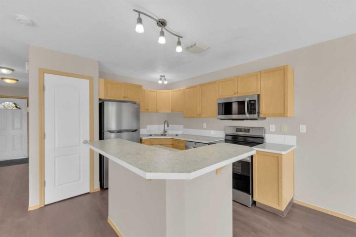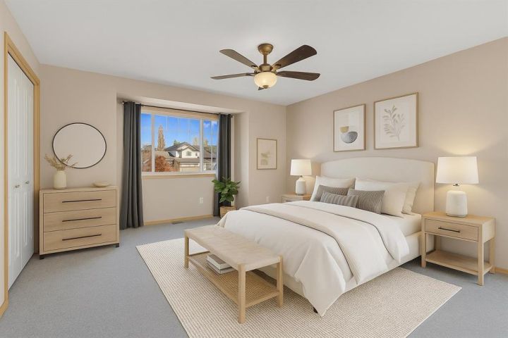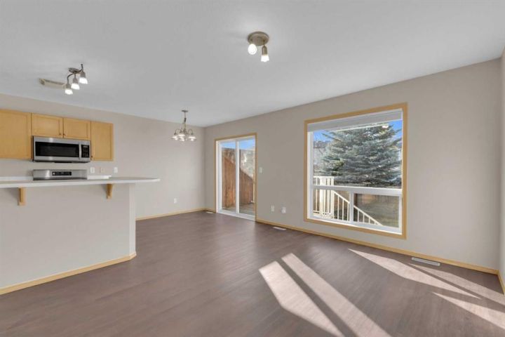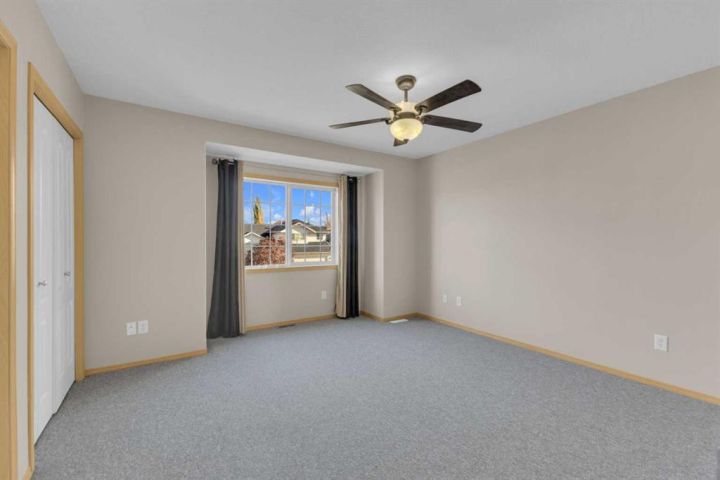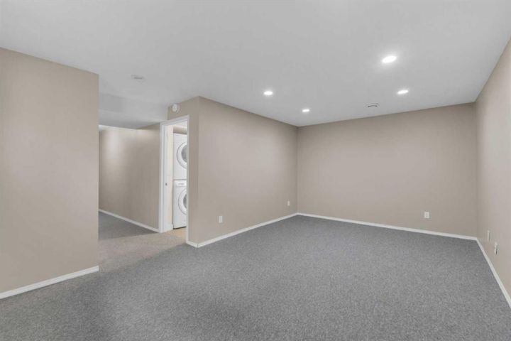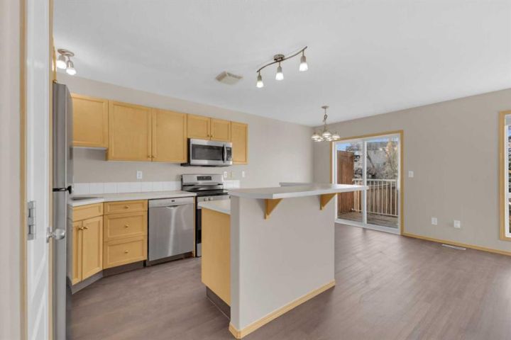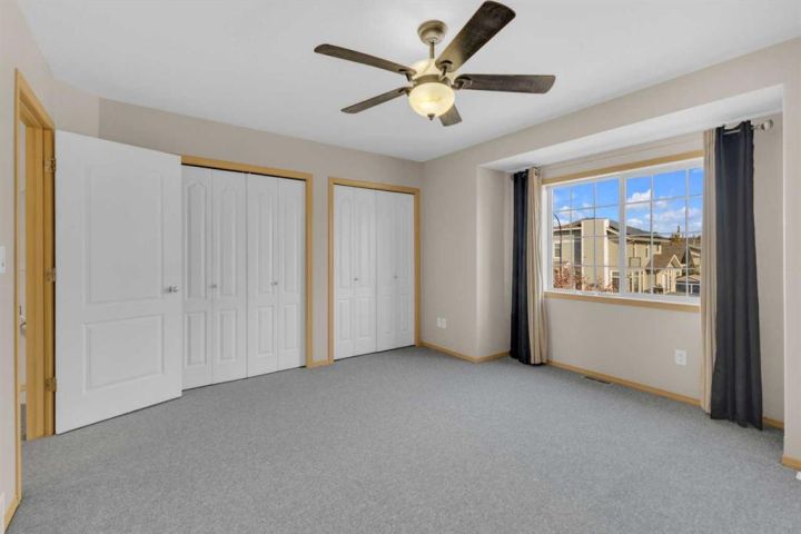 Sought after neighborhood and only SETPS to the park, greenspace and skating rink!! This Fully Developed 3 bedroom 1/2 duplex has brand new carpet top to bottom, new appliances, Air Conditioning, Finished attached garage, Fully finished basement and fenced yard! The main level includes new laminate flooring and is open concept with tons of space and large windows to let in tons of natural light from the west facing backyard. Upstairs there are 3 good sized bedrooms and a full bathroom and all new carpet and paint. The basement is fully developed with a wonderful bathroom/laundry room combination and a good sized family room. The fabulous backyard is ready for the kids and pets - is fully fenced and includes a shed and kids swing set. Only steps to the end of the block where you will find a great playground, winter skating rink and large greenspace. Move-in ready and immediate possession available. Some photos have been virtually staged.