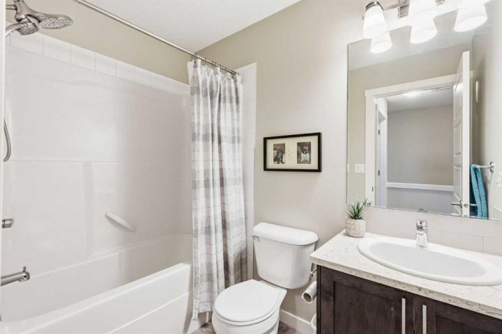 There is something so appealing about buying your first home from an ORIGINAL OWNER who has loved and cared for their property and is MOVE IN READY for you. Upon entering your new home, you’ll notice the obvious PRIDE OF OWNERSHIP with everything in like-new condition. Imagine yourself coming home from a long day of work to your young family, from the OPEN CONCEPT LAYOUT and spotless LAMINATE PLANK FLOORING in the main floor that only requires easy maintenance especially for your young children or pets. You know work life and caring for young children consume most of your time, so you feel very grateful that the FULL HEIGHT CABINETRY (no dusting on top) and gleaming white QUARTZ COUNTERS (incl top floor 2 bathroom vanities) ensure that keeping your home clean is much easier. All STAINLESS STEEL APPLIANCES finish the impeccable style of the kitchen area. For most townhomes, it’s rare to find a FULLY FENCED PRIVATE BACKYARD, great for letting out your furry friend, and an outdoor space you can truly call your own. Fortunately, the backyard is also LOW MAINTENANCE to make things even simpler for you in your busy family life. Along with 2 large bedrooms upstairs (with 2 full bathrooms), the basement is FULLY FINISHED with a flex space, great for a playroom for your child, and 1 more bedroom with LEGAL EGRESS WINDOW and full bathroom. Convenience is built right into the location with so many amenities nearby: Summer days with your little one playing in the PARK ACROSS THE STREET, strip mall (restaurants, café, Dollarama – 2 min walk), and groceries just 3 mins away. Future K-12 schools are only 3 – 5 mins as well as the future proposed LRT station (4 mins) to make commutes even easier! Along with superior access to Stoney Tr, Country Hills Blvd, Airport (12 mins) and everything CROSSIRON MILLS has to offer (12 mins) you’ll never run out of things to do in a very efficient manner. Don’t wait, come see this home today!
