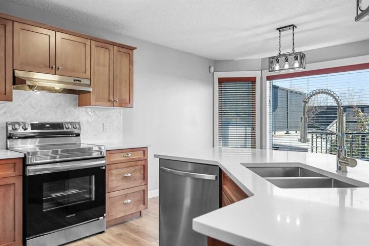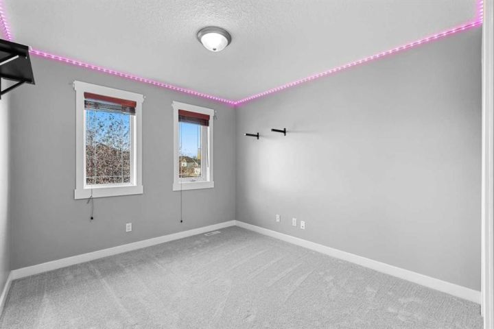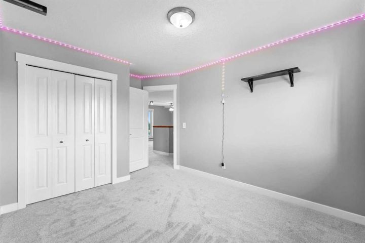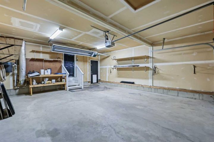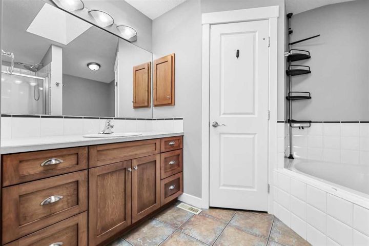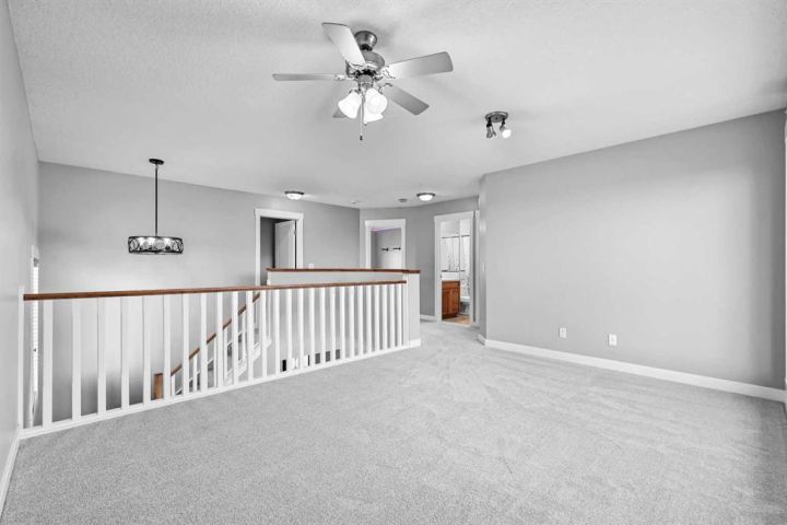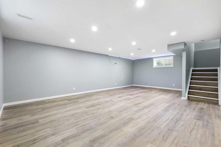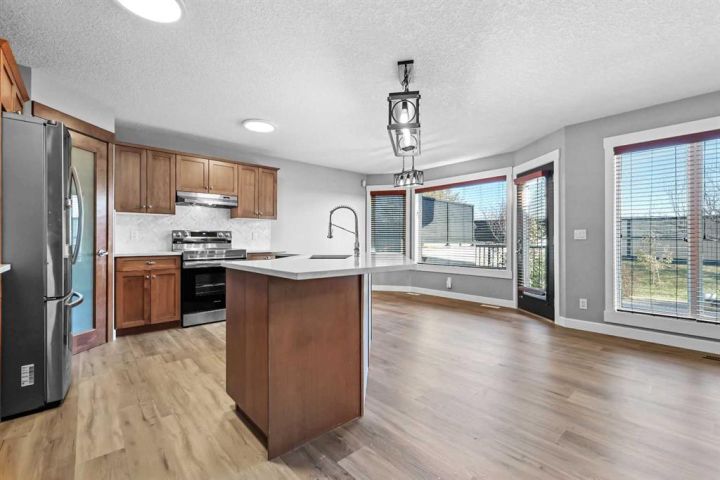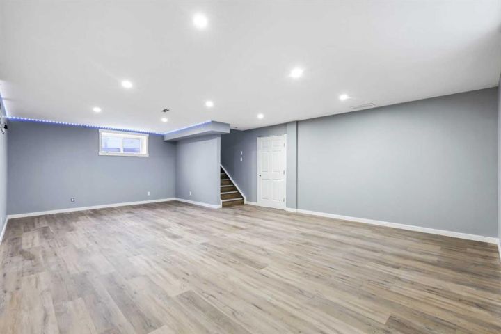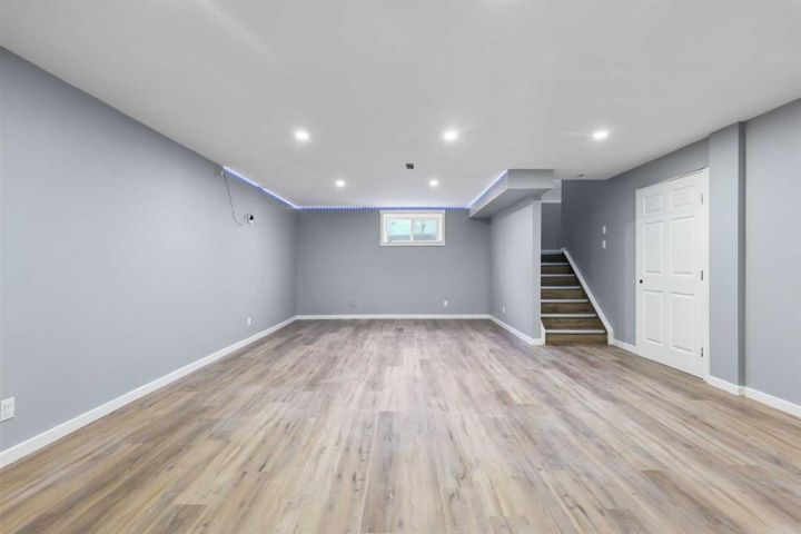Welcome to this stunning, fully upgraded home where modern luxury and everyday comfort unite in perfect harmony. Step through the inviting foyer with double French doors into a bright den or home office, then into the large living room with corner fireplace, open-concept kitchen showcasing new quartz countertops, a new sink with garburator, updated lighting (2023), and a brand-new stove range (Oct 27, 2025). The home gleams with fresh paint (July 2025) and new Luxury Vinyl Plank flooring (Oct 24, 2025) across the main floor and fully finished basement, which also includes rough-in plumbing for a future bathroom. Upstairs, retreat to the primary suite featuring a vaulted ceiling, walk-in closet, and a 4-pc ensuite with skylight, while the 4pcs main bath also offers a skylight that fills the space with natural light. Two additional bedrooms and a spacious bonus room complete the upper level. Enjoy year-round comfort with brand-new central A/C, a new hot water tank, and a heated, fully finished garage. Outside, entertain or unwind in your south-facing backyard oasis with a maintenance-free deck, hot tub, gas line hookup for BBQ, large stamped-concrete patio with fire pit, and stamped-concrete in the front , garden beds, all maintained by an in-ground irrigation system. With a new roof (2020) and just a 10-minute walk to the lake and beach, this exceptional home delivers style, comfort, and resort-inspired living—a true move-in-ready masterpiece.
