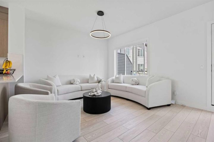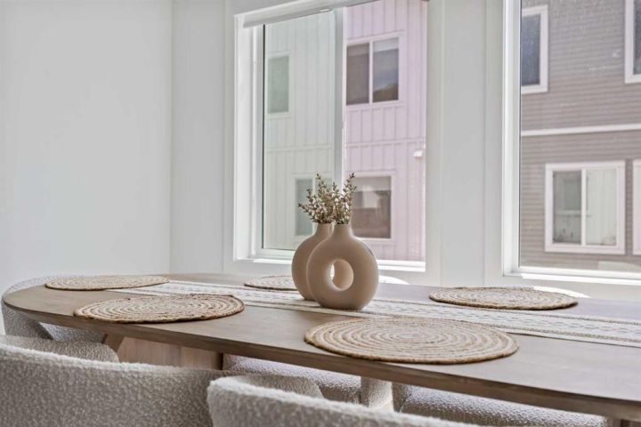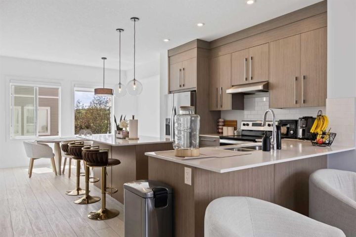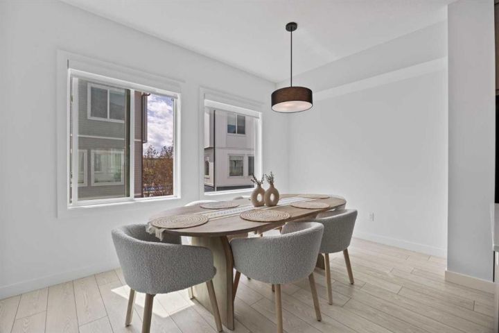 Step into a lifestyle of comfort, versatility, and connection in this thoughtfully designed 4-bedroom, 2.5-bath townhome located in the heart of Pine Creek, a peaceful and well-connected community where nature blends seamlessly with convenience. As you enter the home, you’re welcomed by a bright and spacious main-floor bedroom. Whether you choose to turn it into a private home office, an energizing workout room, or a cozy guest space, this room offers the flexibility to suit your needs. Picture yourself starting your mornings here with a quiet coffee and a moment of calm before taking on the day. Upstairs, the open-concept living and dining area is filled with natural light, creating a warm and inviting atmosphere. The kitchen is both modern and functional, perfect for hosting gatherings or simply enjoying family meals. Step out onto the large glass-enclosed balcony, where you can enjoy your morning tea or relax in the evening. With views overlooking a serene central courtyard, you’ll appreciate the added privacy and sense of escape. The upper level includes three more generously sized bedrooms, including a tranquil primary suite with its own ensuite bathroom. Every detail in this home is designed to support a balanced lifestyle, offering both open spaces to connect and quiet corners to recharge. An oversized double attached garage provides ample space for parking, storage, or even a workshop. Whether you're stowing away seasonal gear or keeping your vehicle sheltered through the winter, the extra room is a valuable bonus. Located just moments from shopping, schools, parks, and playgrounds, this home also offers easy access to the Somerset C-Train Station for those who prefer to travel by transit. This townhome in Pine Creek is more than just a place to live. It is a place where comfort, style, and everyday convenience come together to create something truly special.