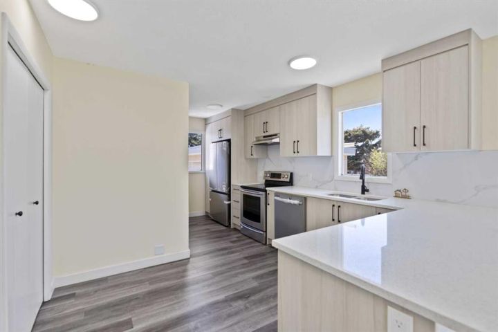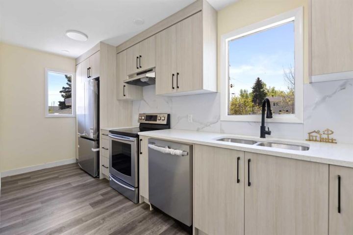 Discover exceptional value and space with this charming home nestled on a massive 120' x 130' lot — over 1/3 acre of beautifully landscaped grounds featuring manicured hedges and vibrant flower beds. From the moment you arrive, the grand entrance with elegant marble flooring sets the tone for the style and warmth found throughout the home. The spacious living room, filled with natural light from large windows and anchored by a cozy fireplace, offers the perfect setting for both relaxing evenings and lively gatherings. The main floor hosts three well-appointed bedrooms, a four-piece bathroom, a functional kitchen, and plenty of built-in cupboards providing generous storage. The lower level expands your living space with a welcoming family room, an additional bedroom, a cold room, a three-piece bathroom, and a recreation room ideal for hobbies or entertaining. Added convenience includes upstairs laundry and a large back entrance for easy everyday living. Outdoor enthusiasts will love the double garage with front and back doors, offering seamless drive-through access. A paved driveway enhances curb appeal and practicality alike. Properties with lots this large are truly rare—don’t miss your opportunity to make this exceptional home your own!