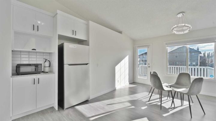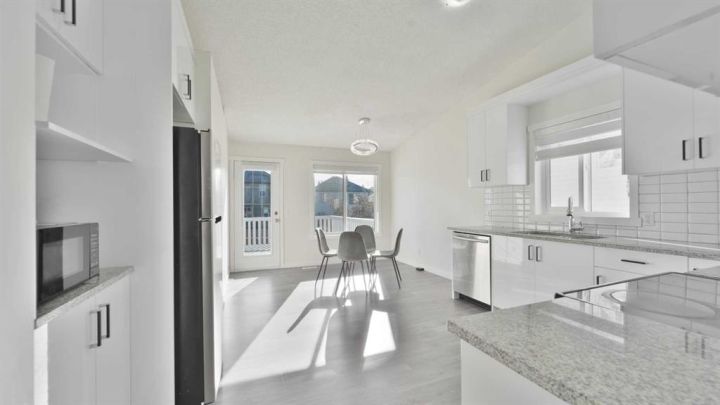OPEN HOUSE SATURDAY AND SUNDAY 12PM-3PM. This fully renovated bi-level home is ideally situated on a quiet street adjacent to green space, featuring a sunny south-facing backyard with alley access and a generous lot size. Offering over 1,900 sq. ft. of living space, including 5 bedrooms and 2 full bathrooms, this property is an exceptional option for your next home. Upon entering, you are greeted by impressive vaulted ceilings and an expansive main-floor layout. The south-facing orientation, combined with abundant windows, provides a warm and inviting atmosphere with natural sunlight throughout the day. Recent upgrades include a completely redesigned full-sized kitchen, Brand new stainless steel appliances, New baseboards and casings, New fixtures and accessories , Fresh paint throughout, New doors and flooring, Updated bathroom vanities and much more. The main floor features a spacious family room with large windows, seamlessly connected to the new white chef’s kitchen equipped with stainless steel appliances. A dining nook provides direct access to the large backyard deck—perfect for barbecues and outdoor gatherings. This level is completed by two well-sized bedrooms, a 4-piece bathroom, and a large primary bedroom. The lower level offers a generous entertainment area with a fireplace, a den, two additional well-sized bedrooms, and another 4-piece bathroom. The laundry area includes a brand new washer and dryer. The basement also features a side entrance and a kitchen, making it an illegal suite offering additional living flexibility. Additional highlights include a front double garage and rear alley access, ideal for vehicles, recreational equipment, or storage needs. Located next to green space and set on a tranquil street, this home provides convenient access to walking paths and everyday amenities. The established community offers schools, transit options, and easy access to Deerfoot Trail and Stoney Trail. This is a fantastic opportunity—a beautifully renovated home in a prime location that is sure to impress. It will not last!