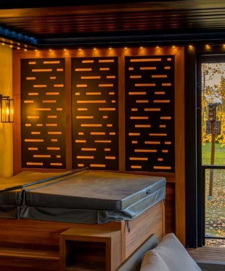 Built-in Barbecue, Covered Courtyard, Fire Pit, Lighting, Outdoor Kitchen