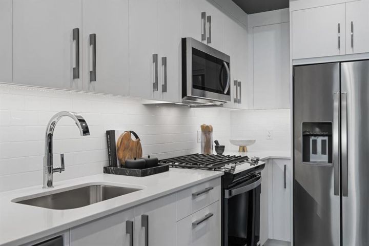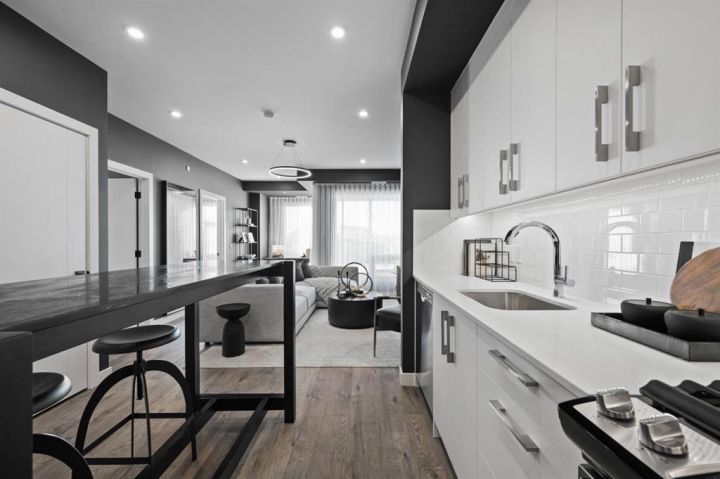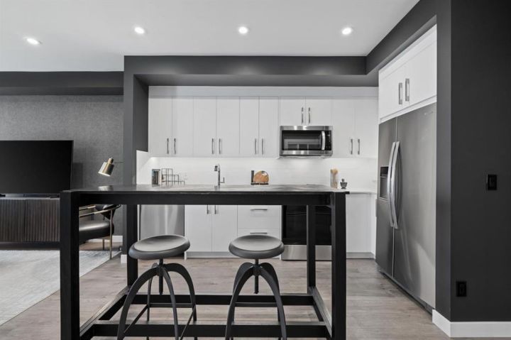 Discover modern city living at Frontier, a boutique development by Truman ideally situated in the heart of Kensington—one of Calgary’s most walkable and culturally rich neighbourhoods. This 2-bedroom, 1-bathroom condo is a smartly designed space that balances style and functionality, making it an excellent choice for urban professionals, couples, or savvy investors. The open-concept layout is filled with natural light, offering a contemporary flow that maximizes efficiency in every square foot. The streamlined kitchen features quartz countertops, full-height cabinetry, and premium stainless steel appliances—all connected seamlessly to the bright, airy living area, perfect for hosting friends or unwinding after work. Both bedrooms are designed with comfort and flexibility in mind—ideal for restful nights, a productive work-from-home setup, or accommodating guests. The sleek 4-piece bathroom is finished with clean, modern details, combining function with a spa-inspired feel. Additional features include one titled underground parking stall and access to exclusive resident amenities such as a fully equipped fitness centre, co-working lounge, secure bike storage, and a beautifully landscaped private terrace. Just steps from boutique shops, cafés, acclaimed dining, scenic river pathways, LRT stations, and Calgary’s downtown core, Frontier offers exceptional value and location for those looking to live or invest in one of the city’s most vibrant communities. *Photo Gallery of Similar Unit*