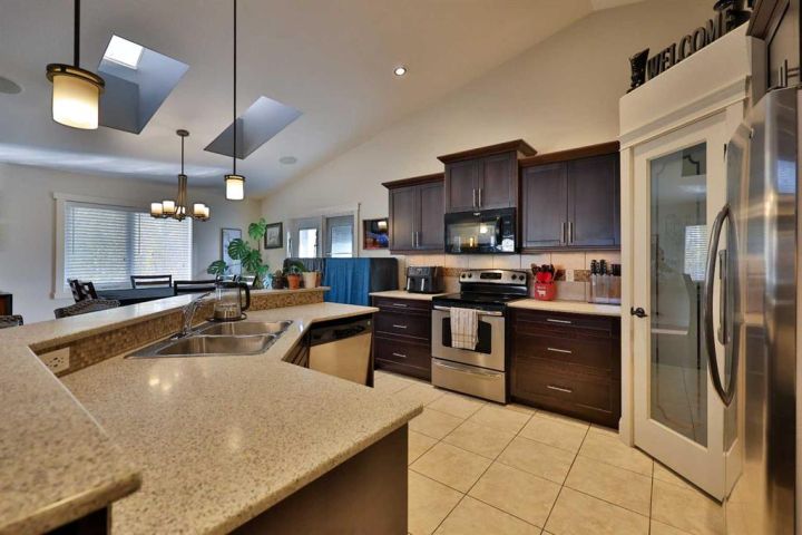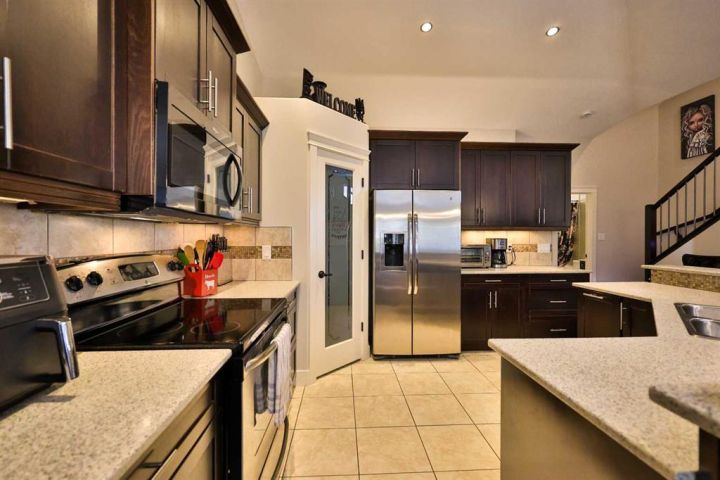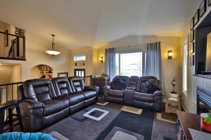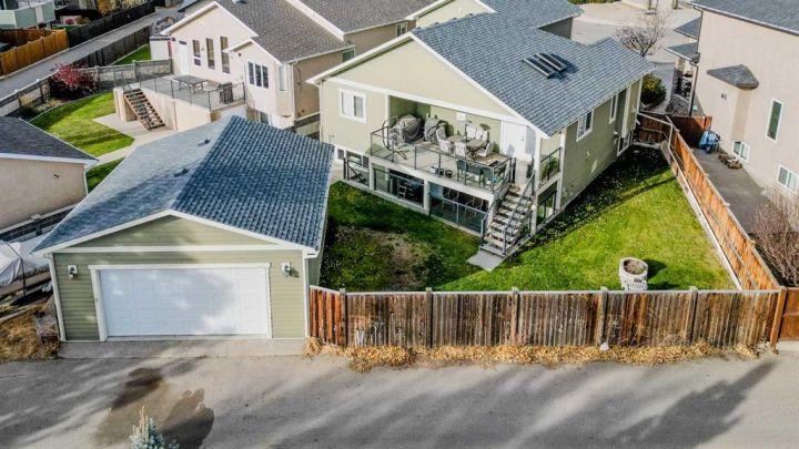 Welcome to this beautifully maintained executive modified bi-level home built by Grizzly Ridge! It offers over 1,700 sq. ft. of comfortable living space with thoughtful details throughout. Built in 2009, this property combines functionality and luxury in a quiet south-side crescent location. And car enthusiasts and hobbyists will appreciate not one, but TWO heated double garages—an attached 22' x 25'6" garage plus a detached 24' x 24' garage with 10’ ceilings, 220 power, and built-in speakers! The spacious main level features vaulted ceilings, a bright open-concept living area, and a stunning kitchen with a large centre island and plenty of storage and workspace. The generous primary suite is a true retreat, complete with a double vanity, walk-in shower, and relaxing soaker tub. Both the main floor and upper bathroom feature in-floor heating for added comfort! Downstairs, the full walk-out basement feels bright and inviting with 9’ ceilings and large windows that bring in plenty of natural light. The expansive family room is perfect for movie nights, games, or entertaining—with a pool table and hot tub included. There’s also additional parking space behind the home for extra vehicles or guests. Additional highlights include built-in indoor and outdoor speakers, two fireplaces, central A/C, underground sprinklers, a covered rear deck, glass railings, and a fully fenced, landscaped yard. This is a rare opportunity to own a spacious, move-in-ready home with exceptional garage space and an ideal layout for family living or entertaining!