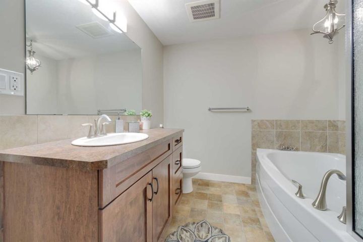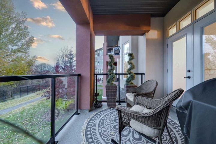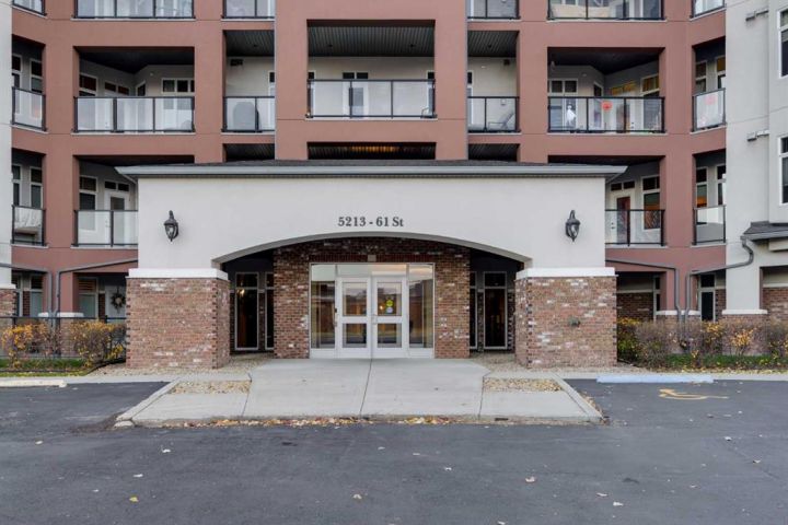 Simplify Your Life in Style! Ready for the ultimate lock-and-leave lifestyle? This adult-only condo is perfect for downsizing or snowbirds seeking freedom without compromise. Enjoy absolute peace of mind with a secure building, titled underground parking, and a bonus storage room—travel often and worry never. The unit itself is bright and beautiful. The spacious, open floor plan is ideal for entertaining, centered around a fantastic kitchen featuring a functional island and sleek black appliances. You'll love the large pantry and the built-in display. The layout offers two great bedrooms: a private Primary Suite with a luxurious 4-piece ensuite and walk-in closet, plus a versatile second bedroom for guests, or a dedicated office/hobby space. In-unit laundry and a second 4-piece bath add even more convenience. Step out onto your South-East facing balcony! It's a generous size with clear glass panels that preserve your view of the mature trees and the City skyline. Plus, your assigned storage room is a valuable addition for your seasonal gear. Amenities & Value: Enjoy the fitness centre, party room, and beautiful courtyard. Underground Parking for Comfort and Safety. Comprehensive condo fees simplify budgeting by covering heat, water, professional management, and all exterior maintenance. You're just a quick trip to all necessary North Red Deer services: shopping, medical, and banking. Effortless upscale Living