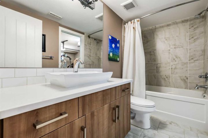 Welcome to this exceptional custom-built home, perfectly situated in one of Calgary’s most sought-after inner-city communities. Boasting over 2,600 sq. ft. of meticulously designed living space, this home blends refined craftsmanship with modern elegance — all just minutes from downtown. Step through the welcoming front entrance into an open-concept main level featuring 9-ft ceilings, rich hardwood floors throughout, and a designer staircase that seamlessly connects the home’s beautiful living spaces. The living room exudes warmth and style, anchored by a floor-to-ceiling tiled gas fireplace — a perfect focal point for cozy evenings. Custom built-in cabinetry adds both charm and functionality, creating a space designed for comfort and connection. The dining area offers an elegant setting for gatherings, while the chef-inspired kitchen is truly a showpiece — complete with a massive quartz island, premium stainless steel appliances, extended cabinetry, and abundant storage. Whether you love to entertain or cook with family, this kitchen delivers both form and function. From the kitchen, step outside to your professionally landscaped, low-maintenance backyard — fully fenced, south-facing, and exceptionally private. The extended patio creates the perfect space for outdoor dining and relaxation in the sun. Upstairs, discover three spacious bedrooms, each designed for rest and relaxation. The primary suite is a private retreat, featuring a spa-inspired ensuite with a dual vanity, soaker tub, tiled glass shower, and a generous walk-in closet. Large windows and custom window coverings complement the 9-ft ceilings, bathing each room in natural light. The upper-level laundry adds additional convenience. Downstairs enjoy the fully developed basement extending the home’s versatility — rec room with built-in surround sound, fourth bedroom and/or home gym with a murphy bed, and a stylish four-piece bathroom completes this space. Additional luxury upgrades include Air Conditioning, GEM Stone exterior lighting (never hang Christmas lights again), central vacuum system, and more. Located in vibrant Currie Barracks, you’re surrounded by parks including outdoor rink, splash pad, playgrounds, walking paths, schools, and local amenities — plus easy access to the downtown core in under 10 minutes. Bonus ** Approved City Development Permit for a future Carriage Home — an incredible opportunity for added value or income potential. Join us for the Open House — Sunday, November 2nd, 1–5 PM! Experience the craftsmanship, comfort, and lifestyle this remarkable home offers.