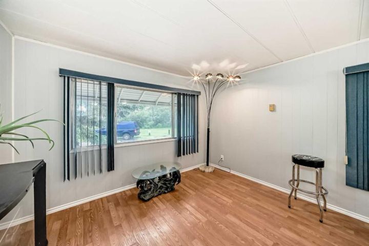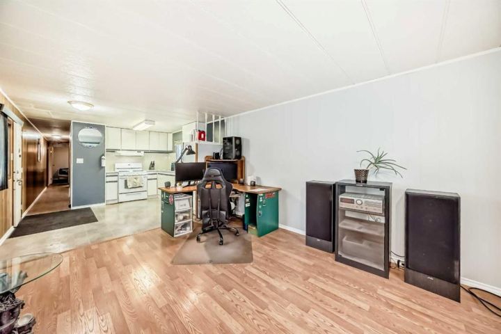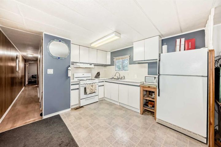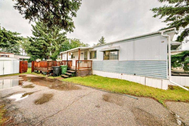 Welcome to this 2-bedroom, 1 bathroom mobile home, nestled closer to the center of Greenwood Village Mobile Home Park. This 1971 mobile home offers a bright and welcoming living space, perfect for those seeking comfort in a family-friendly neighborhood. Step inside and be greeted by an abundance of natural light streaming through numerous windows. The living space features a spacious layout, ideal for both relaxing and entertaining. The kitchen is equipped with 3 appliances ( refrigerator, stove, hood fan), offering a modern touch, and provides ample storage and counter space for all your culinary needs. The bedrooms are cozy and comfortable, the primary bedroom providing room for relaxation. The spacious 4 pc bathroom serves the home with functionality. Outside, you'll find a peaceful partially covered deck perfect for enjoying your morning coffee or hosting outdoor gatherings. The driveway adds extra convenience for parking and accessibility. Located on a quiet street with top notch neighbors this home offers a peaceful retreat from the hustle and bustle of city life. Greenwood Village is ideally located near shopping, parks, the new farmers market in Northwest Calgary, and Stoney Trail, making commuting and daily errands a breeze. Plus, pet owners will love being steps away from a dog park, perfect for giving your furry friends plenty of space to run and play. Don't miss this rare opportunity to own a well-maintained mobile home with some the upgrades you need. Schedule a viewing with your favourite Realtor today and make this peaceful property your new home!