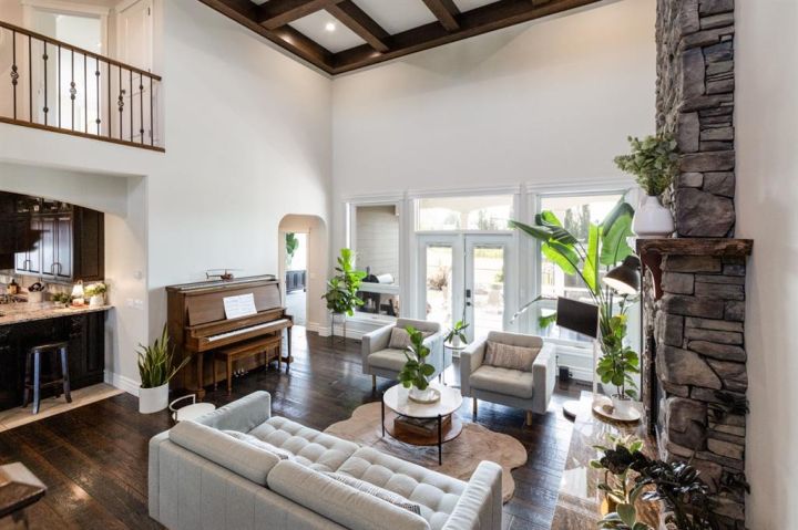 Bar, Beamed Ceilings, Breakfast Bar, Central Vacuum, Chandelier, Closet Organizers, Crown Molding, Double Vanity, Granite Counters, High Ceilings, Natural Woodwork, No Smoking Home, Open Floorplan, Pantry, Soaking Tub, Storage, Tray Ceiling(s), Vinyl Windows, Walk-In Closet(s), Wet Bar, Wired for Sound