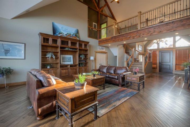 Spectacular Custom Estate with Panoramic Coulee Views Prepare to be impressed by this custom-built masterpiece offering breathtaking coulee views and luxurious living on an expansive 0.64-acre lot. Designed with exceptional craftsmanship and attention to detail, this home combines elegance, comfort, and resort-style amenities. The 2747 square feet main floor showcases soaring ceilings, expansive windows, and a seamless flow between the great room, dining area, and chef-inspired kitchen with walk-through pantry. The primary bedroom features dual walk-in closets and a spa-like five-piece ensuite. Custom cabinetry, built-ins, and millwork throughout highlight the home’s superior construction quality. The 25' x 49' heated garage is an entertainer’s dream—complete with built-in BBQ, sink, extensive cabinetry, and three TVs—perfect for hosting or showcasing your vehicles. Enjoy the enclosed sunroom, a large main-floor laundry room, with stunning coulee views from every angle. The upper floor ( 1484 square feet) is mostly open view to the exceptional main floor. The upper level features two good-sized bedrooms, 4 piece bathroom, and a cozy study/library corner and bonus area with fireplace. Spectacular views too!! Moving downstairs to the walk out basement the whole family will be impressed with this space. Enjoy a game of pool,(table included) huge wet bar, media area, designated gym space (equipment included), two more bedrooms, two full bathrooms, full laundry room, wine & regular storage rooms, plus access to the enclosed hot tub room and private pool area. Dual staircases on each end of the house allow for easy access between levels The extra laundry room works great for the wet towels!!. Enjoy year-round luxury—whether swimming in your private pool, relaxing in the hot tub, hosting movie nights, or simply taking in the ever-changing views of nature. This exceptional property offers a rare combination of privacy, elegance, and lifestyle in one of the city’s most desirable settings.. If you love Whitefish or Canmore you will love this property!! If you thought you would only consider a Bungalow, you may want to consider a look here!!