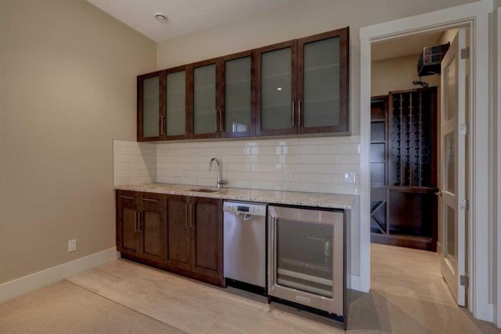 RARE OPPORTUNITY TO OWN A LUXURY VILLA LOCATED IN THE SOUGHT-AFTER Community of Watermark. This executive MAINTANENACE FREE Villa with amazing MOUNTAIN VIEWS on a premium view lower row lot with no road behind features over 2000sq ft of total living space. METICULOUSLY MAINTAINED 3-bedroom, 3-bathroom luxury home, steps from the Watermark PATHWAY SYSTEM leads to the amazing amenities this premier community has to offer. As you enter you will be amazed by the abundance of NATURAL LIGHT coming from the WEST FACING WALL OF WINDOWS capturing the outdoor PANORAMIC VIEWS, and 10' ceilings on the main and lower level. The heart of the home, a chef’s kitchen with STAINLESS STEEL appliances including GAS cooktop, separate WINE FRIDGE, granite countertops and an integrated tv to watch that Blue Jays game, while preparing for a gourmet dinner or for all your entertaining needs. Off the kitchen a bright living room with BREATHTAKING unobstructed Mountain views. Off the main living area, a beautiful master bedroom suite that is a true retreat featuring his and hers closets with built-in organizers includes a LUXURIOUS 5-piece en-suite featuring DUAL SINK vanity, OVERSIZED shower, separate soaker tub, and IN-FLOOR HEATING. Completing the main level a full laundry room with a sink, cabinets and counter space, half bathroom, large foyer and mudroom. The lower level with WALKOUT is the perfect place to relax and watch a movie or entertain in your extra-large family room. Two additional bedrooms, an enormous SPA like 5pc bathroom, large walk in temperature controlled CUSTOM-BUILT IN WINE ROOM with glass doors, a large wet bar with beverage fridge, GRANITE counters & dishwasher finishes off the basement. The OUTDOOR LIVING SPACES are generous with a large upper deck off the main room offering an unparalleled PANORAMIC MOUNTAIN view and a large lower-level PRIVATE concrete patio that allows you to enjoy the scenery and enjoy the AMAZING SUNSETS. Villa residents also have exclusive access to the clubhouse that offers a well-equipped fitness studio on the lower level and a lounge on the upper level featuring a pool table, generous seating area, TV and a full kitchen. This exceptional home includes multi-zone in-slab glycol heating, central vacuum, AC, HEATED EPOXY-COATED garage floor, gas line running to the upper deck and SOLAR TINTING ON WINDOWS. This property truly needs to be seen to be fully appreciated…WELCOME HOME