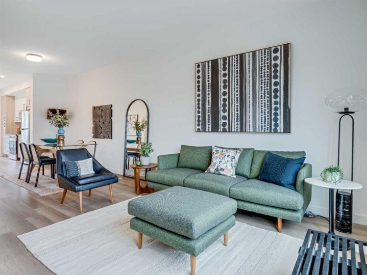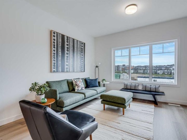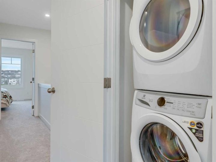 Step into a life of style and ease with this gorgeous, three-story townhome nestled in the highly sought-after Westmount, Okotoks community. Built by the trusted team at Slokker Homes, this property is your launchpad for modern living in a prime, family-friendly location. The bright, open-concept main floor is designed for seamless entertaining. You'll love the airy feel created by soaring knockdown ceilings and the flow of the durable vinyl plank flooring. The kitchen is a true showstopper: Quartz counters, high-end stainless steel appliances and chic, two-tone cabinetry with soft-close drawers. Upstairs, you'll find two generous bedrooms, including the relaxing primary suite with its own full ensuite bathroom. A well-placed laundry area on this level makes laundry a breeze. Location is everything, and this one delivers! Enjoy the security and convenience of an attached garage plus an EXTRA TITLED parking stall!. Your prime Westmount spot puts you steps from the Daily errands and weekend fun are simple with the Westmount Centre retail hub—offering essential shopping, dining, and services—just minutes away. This home beautifully blends sophistication, comfort, and unbeatable location, providing the perfect base for your vibrant life in the foothills.