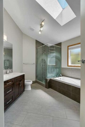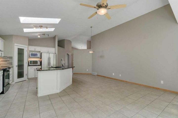 Welcome to this beautiful vaulted bungalow on a spacious corner lot with a sun-drenched south-facing backyard in the heart of Thorburn. This fully developed home offers over 2,600 square feet of beautifully balanced living space designed to support both daily comfort and effortless entertaining. The open-concept layout is enhanced by soaring ceilings and skylights that invite warmth and natural light into every corner while central air conditioning keeps you comfortable in any season. The kitchen is the hub of the home, featuring granite countertops, under-cabinet lighting, stainless steel appliances and a walk-in pantry, all open to the dining area and bright living room framed by south-facing windows. Step out to the expansive deck and enjoy summer BBQs or quiet mornings under the canopy of mature trees. The vaulted primary bedroom is a true retreat with extra windows, a walk-in closet, and a spa-inspired ensuite complete with dual sinks, a jetted tub, custom tile shower heated floors and another sunny skylight for loads of natural light. Two additional bedrooms and a second updated full bathroom with quartz counters complete the main level. Downstairs, 9-foot ceilings create a sense of volume throughout the massive family room, finished with custom built-in cabinetry and a gas fireplace, ideal for movie nights, play space or entertaining guests. A fourth bedroom and third full bathroom provide added flexibility for guests, teens or multi-generational living. The oversized double attached garage is insulated and drywalled with plenty of room for storage or hobbies. The backyard is fully fenced with mature trees and room to play or garden. Located in a well-established community close to parks, schools, walking paths and East Lake, this home delivers comfort, convenience, and a setting you’ll love coming home to!