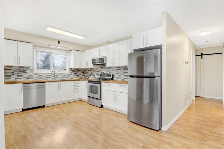 This charming updated 1,151 sq. ft. 5 bed, 2.5 bath home with detached dbl heated garage is perfectly located across from a playground/park, and just minutes from Alexander Forbes and St. Pat’s school — an ideal spot for families. The main floor showcases a bright modern kitchen with crisp white cabinetry, butcher block countertops, a full tiled backsplash, high-end appliances, and a new sink with garburator. There’s plenty of room for a dinette table, plus convenient access to the back deck for easy indoor-outdoor living. A nearby formal dining area and spacious living room create a welcoming space for family and guests. The primary suite features a remodeled 2-pc ensuite and a large closet, while 2 additional bedrooms and a refreshed 4-pc bath complete the main level. The basement packs potential with 2 more bedrooms, a 3-pc bath w/shower, generously sized rec room and large laundry room with lower cabinetry, and entry to a separate utility area. The flex room serves as a work shop or home office, with storage space beneath the stairs. With the T-bar ceiling, there's easy access to utilities. Enjoy year-round comfort with AIR CONDITIONING and relax outdoors on the composite decks at both the front and back. The fenced yard with rear easement includes a dedicated dog run, fire pit, compost setup, and mature landscaping featuring a crabapple tree and raspberry bushes. A partially finished shed provides additional storage. The massive paved driveway offers ample parking for several vehicles or an RV, and the detached double garage is heated, insulated, and partially boarded — ideal for projects or cold-weather parking. FRESH PAINT, NEWER HIGH-END APPLIANCES and NEW SHINGLES (2022) make this home move-in ready. A truly fantastic find for anyone seeking an updated, family-friendly home with room to grow in one of Grande Prairie’s most welcoming neighborhoods!