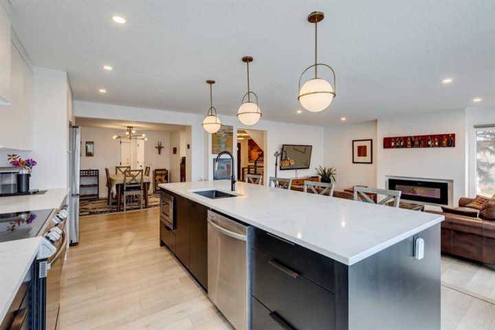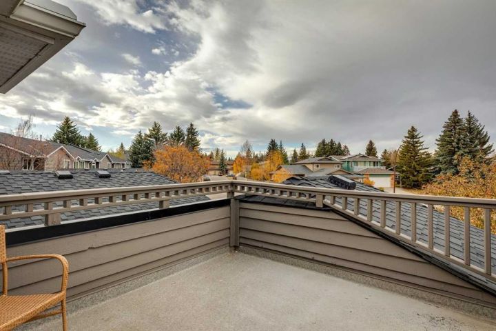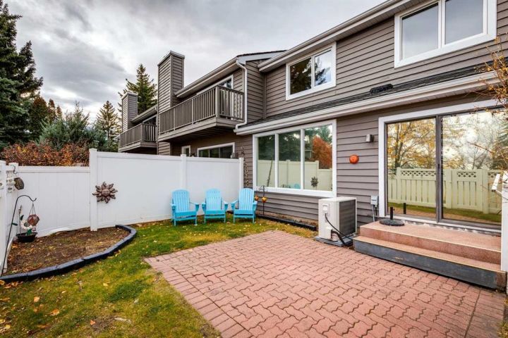 Beautifully renovated end unit townhome, over 2056 sq ft of living space, and backing directly onto a golf course— offering privacy, views, and a serene lifestyle. Inside, the main floor has been thoughtfully updated with modern finishes including all new light fixtures and luxury vinyl plank flooring. A front office with elegant French doors provides a quiet workspace while allowing natural light to stream through. The open-concept kitchen and living room make entertaining a pleasure, with a stunning wall of windows inviting in natural light and showcasing your exclusive outdoor retreat overlooking the golf course. The kitchen has black and white cabinetry with Quartz countertops, a large island with seating for four, abundant counter and cupboard space, and stainless-steel appliances. The living room is very spacious and features a Bluetooth-enabled electric fireplace that can also act as a speaker! A formal dining room, separate laundry room, a half bath, and access to the attached double car garage complete this level. Upstairs, you’ll find three generously sized bedrooms. The primary retreat is exceptionally spacious and includes access to a private balcony with views of the greenspace. The spa like ensuite offers a deep standalone tub, double sinks, separate shower, and a walk-in closet with organizers. A second beautifully renovated full bathroom serves the additional bedrooms, which also enjoy views of the golf course. The basement offers one finished room with the remainder ready for your personal touch. Outdoor living is where this home truly shines — enjoy a private patio facing the golf course with no neighbours behind, plus additional green space beside the unit. Don’t be surprised when the deer come for a visit! The furnace, hot water tank and electrical were updated in 2022, and the A/C is a couple years old. The exterior has been freshly painted. The location can’t be beat: a quiet street and backing onto Canyon Meadows Golf Course!