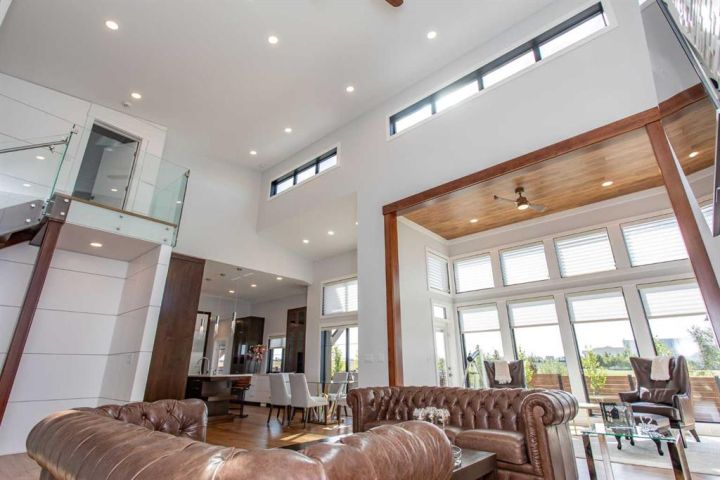 Beautiful MODERN home featuring EXTENSIVE UPGRADES AND HIGH END FINISHINGS. It boasts high ceilings and elegant tile work throughout. The sophisticated lighting design not only highlights the homes architectural beauty but also creates a warm, inviting ambiance. Each detail has been meticulously chosen to deliver the ultimate in comfort and style. Incredible curb appeal, grand entrance, stucco exterior and beautifully landscaped! Open the front door to your forever home and enjoy the modern luxury this home has to offer. An open floor plan soaring vaulted ceilings and massive triple pane (black interior) windows. Kitchen features, sub zero wine fridge, thermador dishwasher, wolf gas cook top, and oven! Expansive QUARTZ COUNTERTOPS, WALNUT CABINETRY, eat up island, reverse osmosis and soap dispenser are just a few more great features. The main floor boasts MAHAGONY HARDWOOD FLOORING, and the extended great room/sunroom features in floor heat. The living room features floor to ceiling NATURAL STONE fireplace wall with a wood mantle. There is a main floor laundry featuring a sink, cabinets and more beautiful white QUARTZ COUNTERTOPS. The main floor bedroom is currently used as an office and adjacent to the stunning 3-piece bath. The STAIRS are solid wood with OPEN RISERS and quality glass railing that lead to your PRIMARY bedroom. An oasis of its own, featuring walk-in closet with custom walnut built in cabinetry, and a 5 piece FULLY TILED ENSUITE. The ensuite has operational IN FLOOR HEAT, quartz counter tops, with dual sinks, and makeup desk, modern lighting, two shower heads, soaker tub and a water closet! The fully developed basement features OPERATIONAL IN FLOOR HEAT, 3 spacious bedrooms, one with its own walk-in closet, a large family room (34'10"x 31'3") with built in TV wall unit, and a functional wet bar with elegant herring bone back splash. There are two stunning spa like bathrooms, fully tiled with modern lighting. More great features this home offers: gas line to deck, composite front deck, glass railing, and duradeck on back deck, front FIR PILLAR, triple pane windows, mud room is tiled, walnut cabinets, wet bar/butlers pantry, custom panels, heated garage floor with floor drain, garage man door, modern overhead silent close door. Situated in the desirable and esteemed community of Timberstone, with an amazing array of shopping amenities nearby.