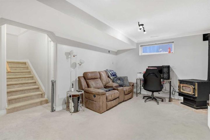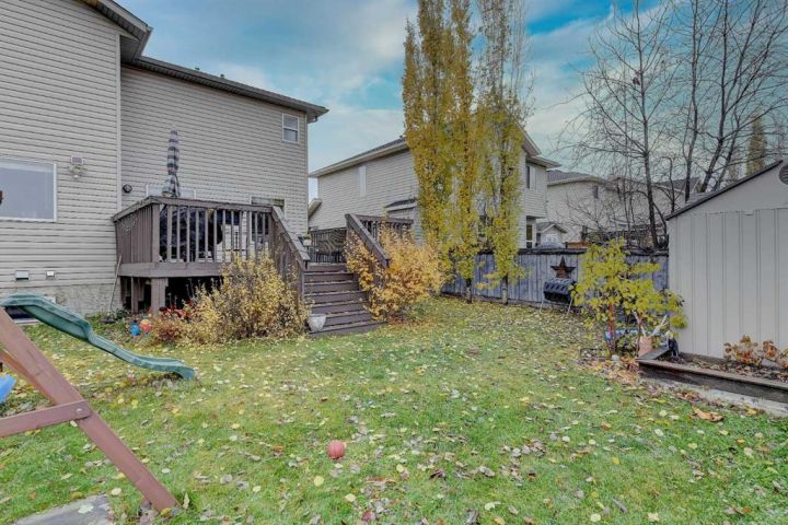 Welcome Home to this family friendly fully developed four-bedroom home with no rear neighbors. This Crystal Lake Estates home invites you to come in from the covered front landing into the home’s large foyer. The main level offers open concept living room, kitchen and dining area that overlooks the rear yard and the large, grassed playground behind the home. The living room is bright and cheery with large windows and a gas fireplace with beautiful stone wall and mantle; the dining area has room for a good-sized dining set, and the kitchen is well equipped for the cooks in the family and openness that allows for open interaction between all three areas and the large rear deck and fenced yard. A two-piece bath, main floor laundry and entry to the attached double garage complete the main floor. Upstairs there is a large master with a good-sized walk-in closet, and ensuite complete with a custom-tiled shower and separate soaker tub. Two more bedrooms and a full bath complete the upper level. The lower level has been fully developed with a family room with cozy pellet woodstove, a fourth bedroom, a fourth bathroom and a good-sized storage room that could easily double as a craft room or office. Updates to this home include: 2025: dishwasher; 2024: shingles, central air, serviced furnace; 2023: main sump pump along with a secondary pump; in addition there is hookups on the deck for a hot tub, the family room has been wired for surround sound and the rear yard is seeded to a hybrid lawn mix that is drought and pet resistant.