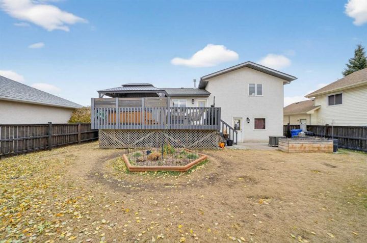 Welcome to 225 10 Avenue NE — an exceptional 4-bedroom, 3-bathroom 3-level split home in the peaceful northeast end of Sundre. Close to parks & featuring RV parking, this 1,197 sq ft gem is designed for comfort, space, & features not one, but two primary suites, each with its own ensuite! Step inside to a sun-drenched living room with a large front window, perfect for versatile furniture layouts. The spacious kitchen offers an abundance of cabinetry, counter space, & a large peninsula — ideal for hosting or prepping meals for the family. Adjacent, the dining area is large enough to seat a crowd & even features a built-in desk nook — a perfect work-from-home or homework spot. Upstairs, you’ll find the first primary suite with 2-piece ensuite, two more generously sized bedrooms, & a full 4-piece bath. Downstairs offers an additional private primary suite featuring a spacious walk-in closet and 3-piece ensuite, making it ideal for guests or teens. Outdoor living shines here with an upper deck retreat complete with hot tub & privacy gazebo, offering a perfect place to unwind after a long day. The fenced backyard is family & pet friendly, with space to garden, play, or entertain. There's even a large dedicated RV parking pad — big enough to accommodate the largest rigs & help you save on storage fees! The attached double garage provides secure parking & extra room for weekend toys or tools. Located just moments from the Red Deer River walking trails, Snake Hill Recreation Area, schools, & shopping, this home balances serenity with convenience. Whether you're a growing family, working professionals, or looking for a home that accommodates aging parents or adult children, this flexible layout is a rare find. Central A/C will keep you cool in the hot summer months, and the brand new furnace (October 2025) will keep you toasty warm on those cold winter days. Don't miss this opportunity to own a truly functional & well-loved family home with RV parking in Sundre! “Home Is Where Your Story Begins!”
