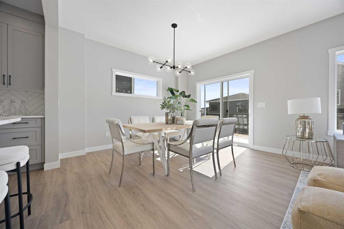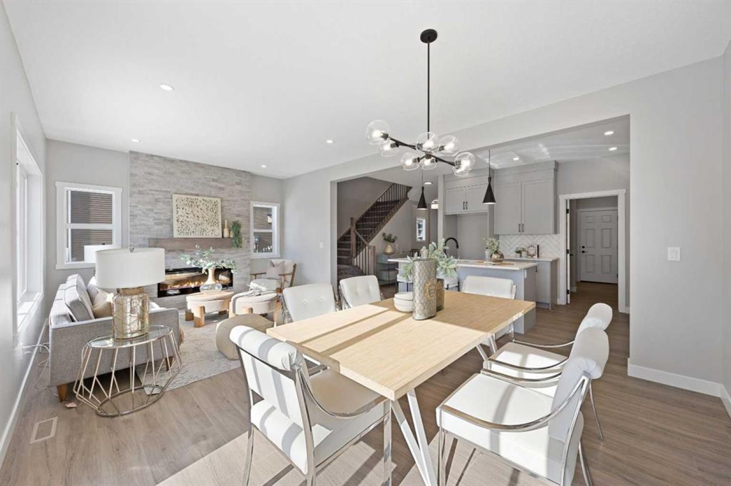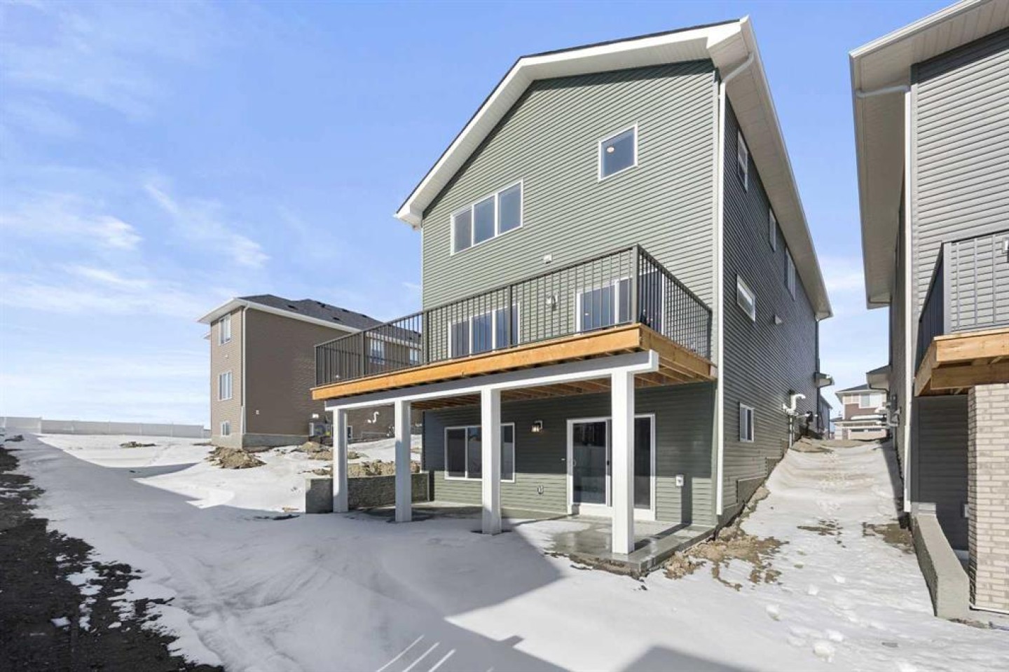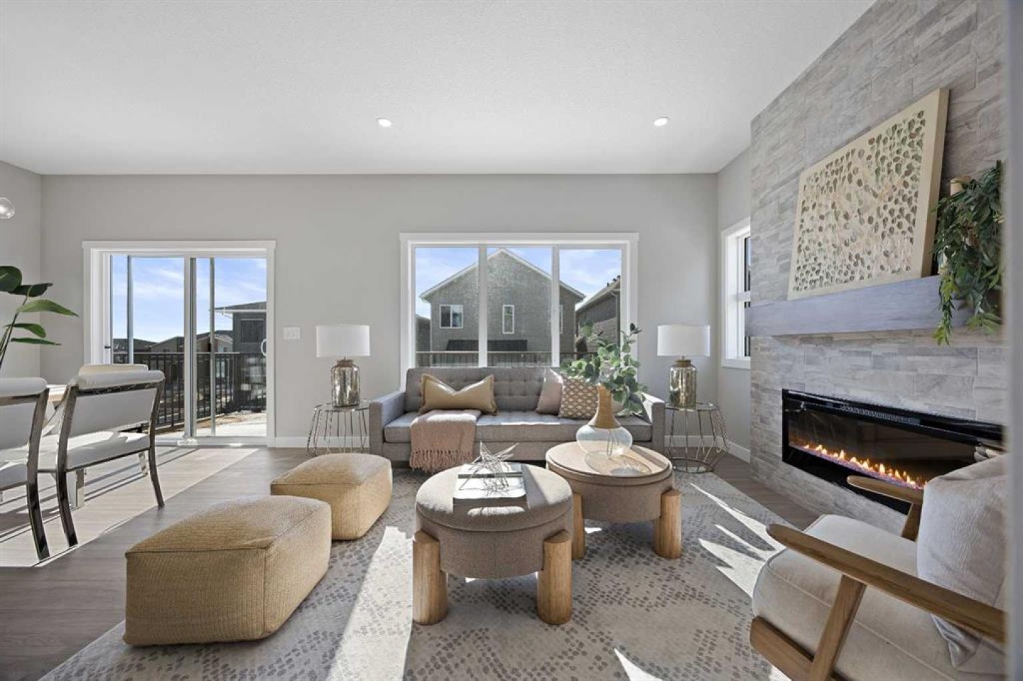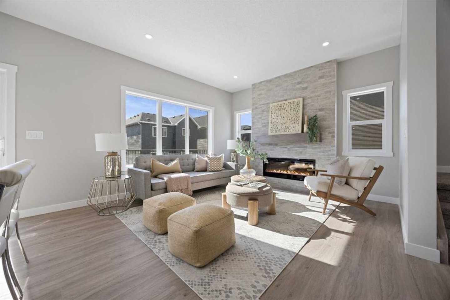 Welcome to 1414 Bayview Crescent, a beautifully designed 3-bedroom, 2.5 bathroom WALKOUT home with sunny south backyard exposure that floods the home with natural light. Step inside to a bright, inviting main floor featuring luxury vinyl plank flooring that spans the entire level and is complemented by 9-foot ceilings. The chef's kitchen showcases sleek grey cabinetry with stylish black hardware, paired with a crisp white tile backsplash, elegant quartz countertops, and stainless steel appliances. A convenient gas line is already installed, should you wish to upgrade to a gas range. The living room features a stunning floor-to-ceiling tiled feature wall, creating a beautiful focal point. Adjacent to the living space, the dining area is ideal for entertaining and flows seamlessly to the outdoors. Extend your living space to the outdoors and enjoy warm summer days on the full-width deck. Completing the main floor are a practical mudroom just off the double-attached garage, a spacious pantry, and a convenient powder room. Upstairs, you'll find a central bonus room that provides separation between the primary suite and the secondary bedrooms, offering both comfort and privacy. The primary retreat is generously sized and features a spa-inspired ensuite with dual sinks, a relaxing soaker tub, and an oversized shower, as well as a truly impressive walk-in closet. A full bathroom complements two additional well-sized bedrooms, while the upstairs laundry room adds everyday convenience. The unfinished walkout basement, with 9-foot ceilings, offers a blank canvas for your future development ideas.
