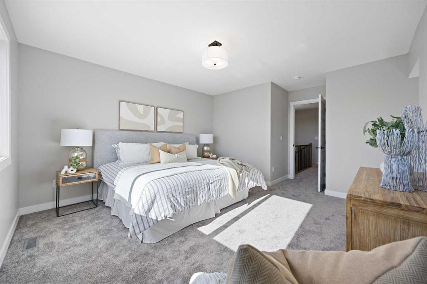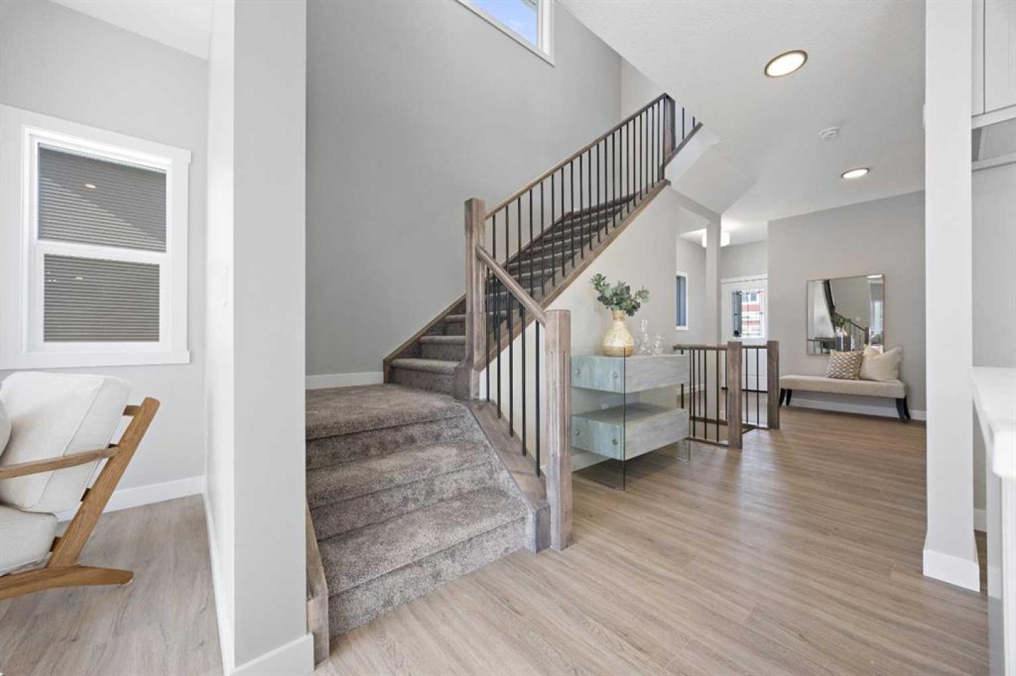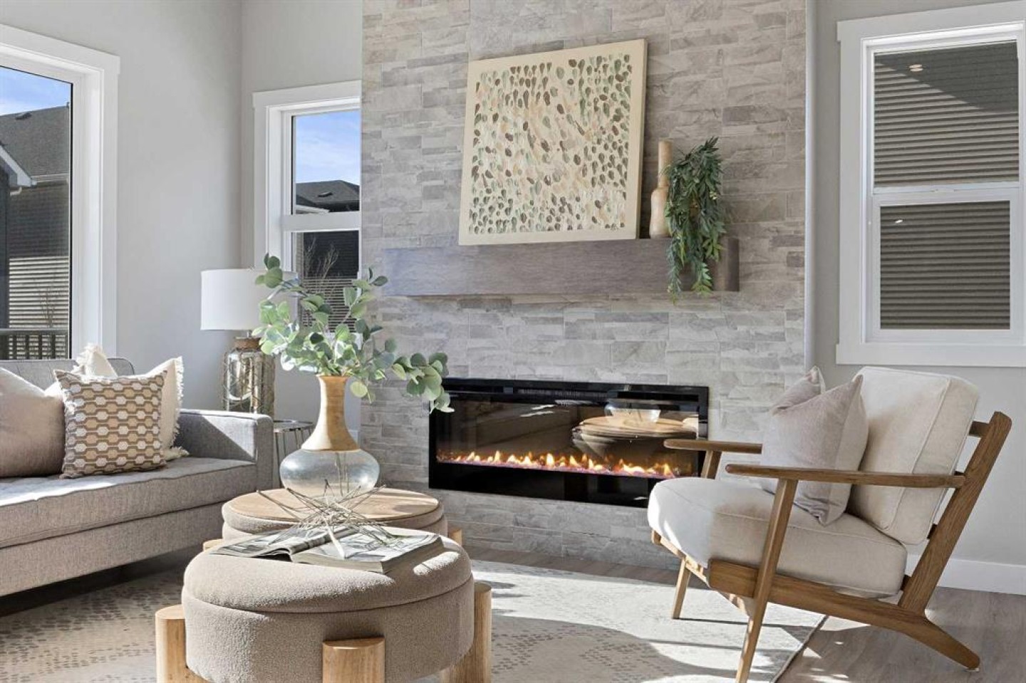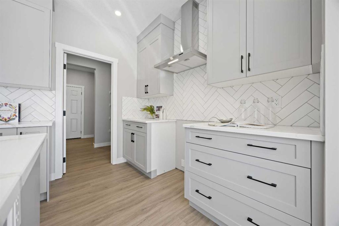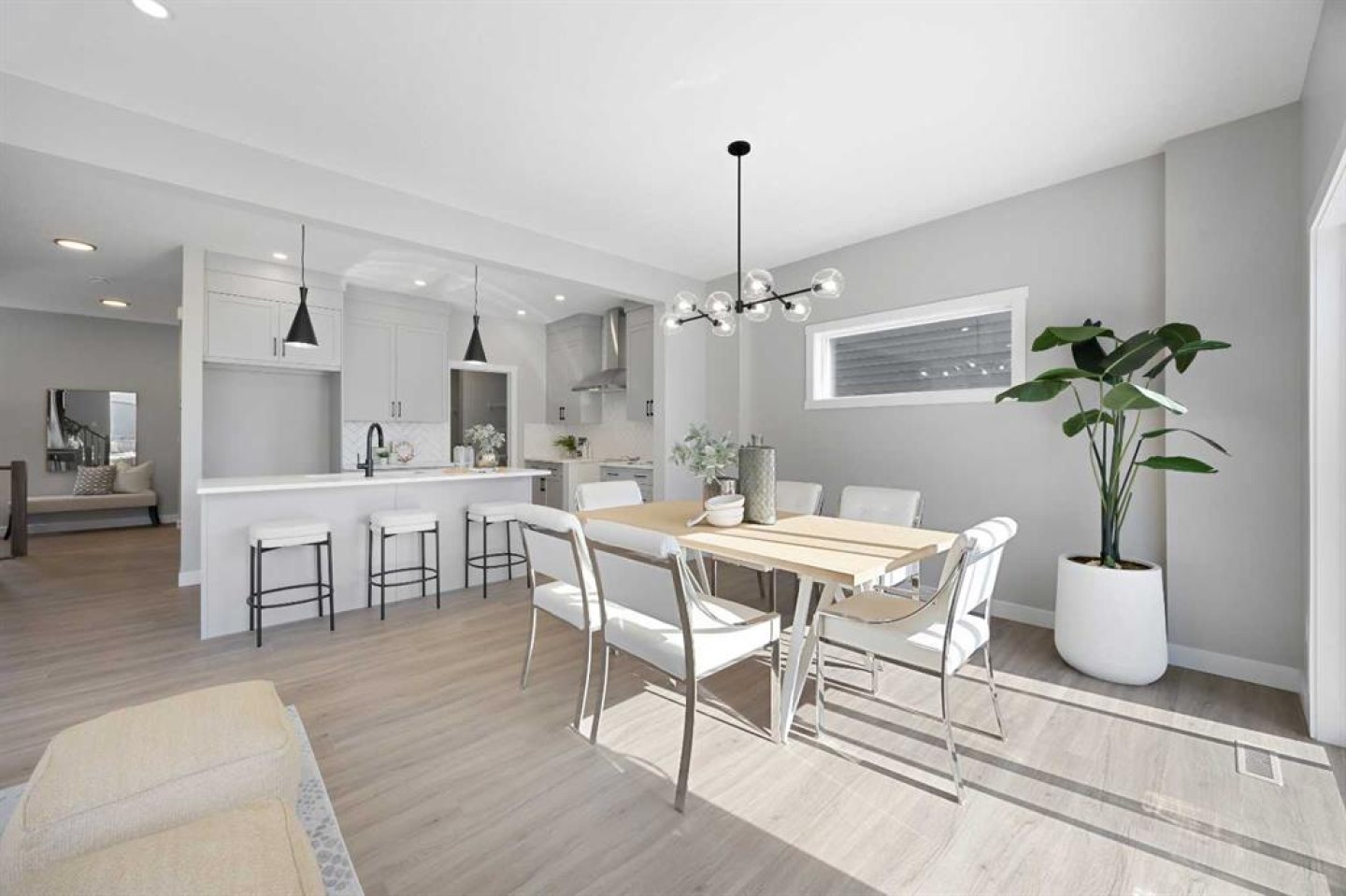 Welcome to 1414 Bayview Crescent, a beautifully designed 3-bedroom, 2.5 bathroom WALKOUT home with sunny south backyard exposure that floods the home with natural light. Step inside to a bright, inviting main floor featuring luxury vinyl plank flooring that spans the entire level and is complemented by 9-foot ceilings. The chef's kitchen showcases sleek grey cabinetry with stylish black hardware, paired with a crisp white tile backsplash, elegant quartz countertops, and stainless steel appliances. A convenient gas line is already installed, should you wish to upgrade to a gas range. The living room features a stunning floor-to-ceiling tiled feature wall, creating a beautiful focal point. Adjacent to the living space, the dining area is ideal for entertaining and flows seamlessly to the outdoors. Extend your living space to the outdoors and enjoy warm summer days on the full-width deck. Completing the main floor are a practical mudroom just off the double-attached garage, a spacious pantry, and a convenient powder room. Upstairs, you'll find a central bonus room that provides separation between the primary suite and the secondary bedrooms, offering both comfort and privacy. The primary retreat is generously sized and features a spa-inspired ensuite with dual sinks, a relaxing soaker tub, and an oversized shower, as well as a truly impressive walk-in closet. A full bathroom complements two additional well-sized bedrooms, while the upstairs laundry room adds everyday convenience. The unfinished walkout basement, with 9-foot ceilings, offers a blank canvas for your future development ideas.