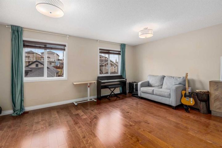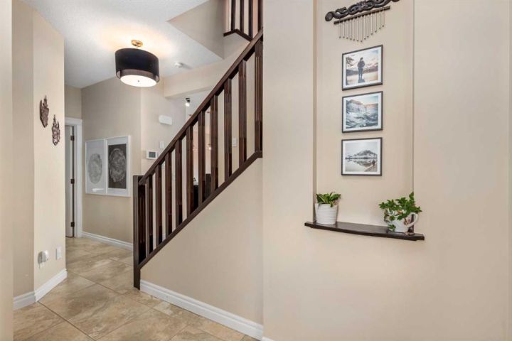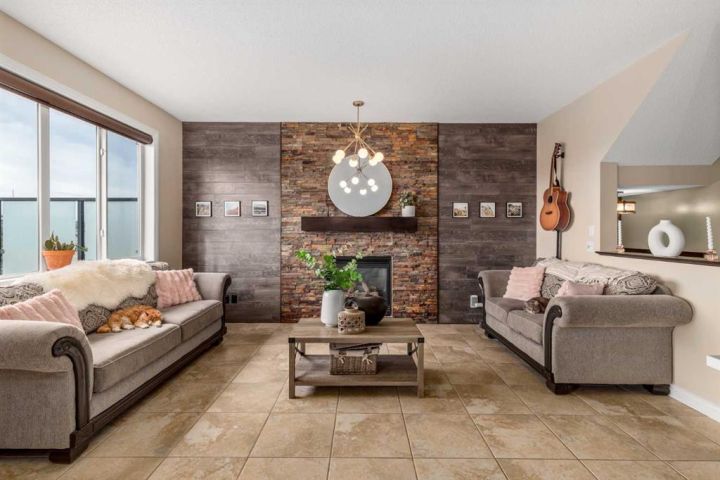 PANORAMIC MOUNTAIN VIEWS/A/C/FULLY DEVELOPED/WALKOUT BASEMENT/NO REAR NEIGHBOURS/BACKING ONTO TRAIL/NEW KITCHEN IN 2022 - Wake up every morning to breathtaking, unobstructed mountain views in this beautifully designed fully developed walkout home offering nearly 2,500 sq.ft. of well-designed living space that’s perfect for families and entertaining. Positioned with no neighbours behind and backing directly onto a peaceful walking trail, this home offers both privacy and incredible scenery. With mature trees, shrubs, and a bright south-facing backyard, it’s the perfect setting to enjoy sunshine and views all year long. Inside, you’re greeted by a bright open-concept main floor thoughtfully designed to maximize natural light and capture those stunning mountain views from every angle. The spacious living area features a cozy stone gas fireplace that creates the perfect focal point for family gatherings or quiet evenings at home. The renovated 2022 kitchen is both stylish and functional, featuring white quartz countertops, new cabinetry, and a seamless flow into the dining area, ideal for entertaining. Step through the patio doors to your large elevated deck with glass railings and a gas BBQ line, where you can unwind and take in sunsets over the Rockies. Upstairs, you’ll find a versatile bonus room with a built-in Murphy bed, perfect as a guest space, theatre, home office, or play area. The primary retreat is a true highlight, offering panoramic mountain views, a 5-piece ensuite with a jetted tub, and a spacious walk-in closet. Two additional bedrooms and a full bathroom complete the upper level, providing plenty of space for family or guests. The fully developed walkout basement expands your living space with a large open rec room, an electric fireplace, and a full bathroom, providing flexibility for movie nights, workouts, or a guest suite setup. Walk directly out to your private landscaped backyard with gate access to the trail, making it easy to enjoy evening walks or morning runs right from your door. The double attached garage is a showstopper in itself, beautifully finished with epoxy flooring and built-in cabinetry, creating the ultimate workshop, hobby space, or “man cave.” This home’s location is second to none, within walking distance to parks, green spaces and close to restaurants, gas stations, and everyday conveniences. With quick access to Highway 1A, weekend getaways to the mountains or Ghost Lake are just minutes away. Bright, inviting, and move-in ready, this home truly checks every box with incredible mountain views, a functional floor plan, a fully developed walkout basement, and a sun-drenched south backyard. Don’t miss your chance to experience it in person. Schedule your private showing today because this one won’t last long!