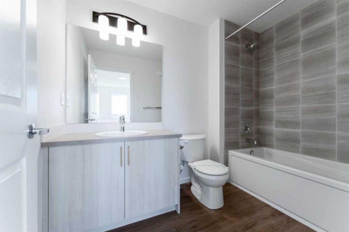 BRAND NEW | NO CONDO FEES | 3 BED | 2.5 BATH | DOUBLE GARAGE | SOLAR PANELS | FACING FUTURE SCHOOL Stunning brand-new 2-storey townhome in Carrington NW with no condo fees! Features 3 bedrooms, 2.5 baths, triple-pane windows, front porch, and double attached garage. Bright open-concept main floor with Vinyl flooring, quartz kitchen with gas stove & stainless steel appliances, plus a half bath. Upstairs offers a primary suite with a walk-in closet & ensuite, two bedrooms, a full bath, laundry, and a balcony. Unfinished basement with rough-ins, 200-amp panel, EV charging rough-in, and solar panels. Close to parks, shopping, and major routes—modern living with no condo fees!