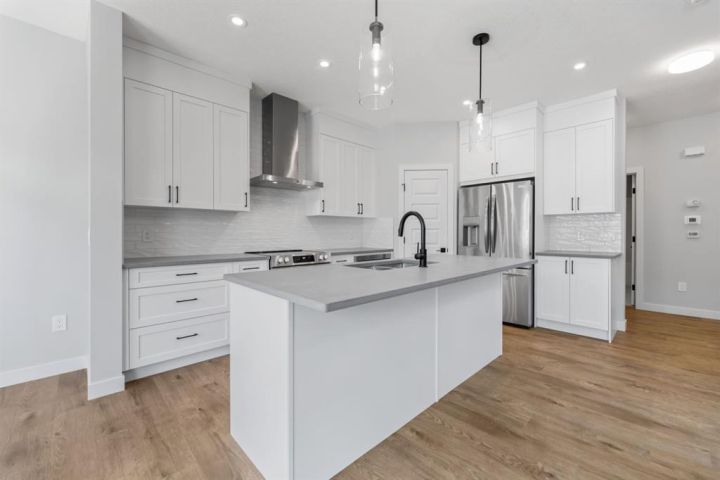 Welcome to The Maverick II by Prominent Homes – a beautifully upgraded 4-BEDROOM WALKOUT home in the community of Heartland. Thoughtfully designed with over $25,000 in upgrades, this 2,182 sq. ft. home offers the perfect blend of functionality, style, and comfort. Step into the inviting open-concept main level featuring 9-ft ceilings and a stunning chef’s kitchen complete with ceiling-height cabinetry, quartz countertops, and premium built-in Whirlpool appliances – perfect for entertaining or everyday living. The spacious dining area flows effortlessly to a massive 10’ x 24’ south-facing deck, ideal for soaking in sunny views and backyard serenity. Upstairs, you'll find a generous bonus room, FOUR well-appointed bedrooms, and a luxurious 5-piece ensuite with a glass-enclosed shower and deep soaker tub in the primary suite. Two of the secondary bedrooms also include walk-in closets for added storage and convenience. Additional highlights include a built-in mudroom bench with coat hooks, 9-ft ceilings in the unfinished walkout basement, and direct access to nearby parks, pathways, and playgrounds – making this home as family-friendly as it is elegant. Heartland is a wonderful community that boasts small town charm while keeping you close to all amenities and a quick commute to the mountains or the city. Possession available August 2025 – don’t miss your chance to own this stunning move-in ready home.