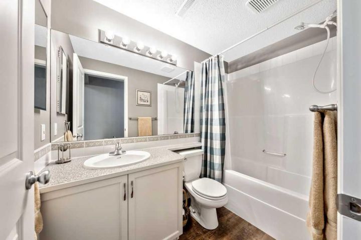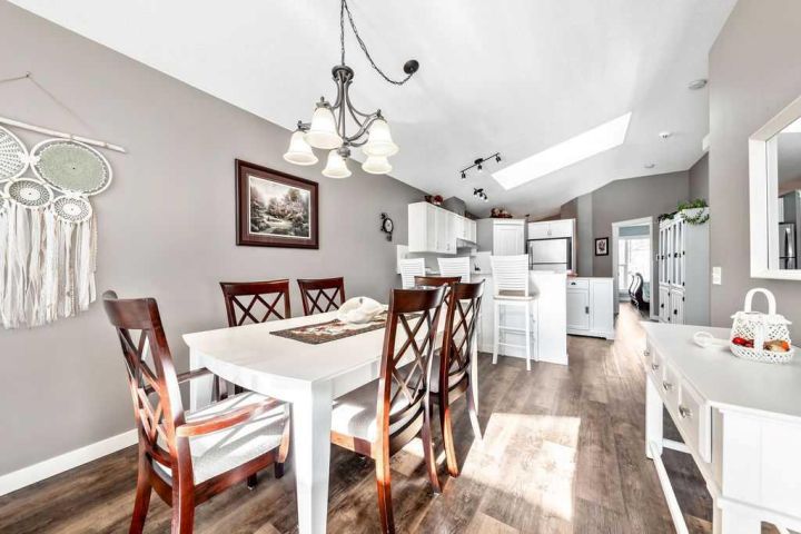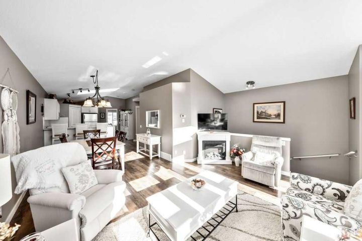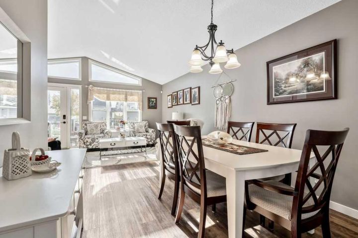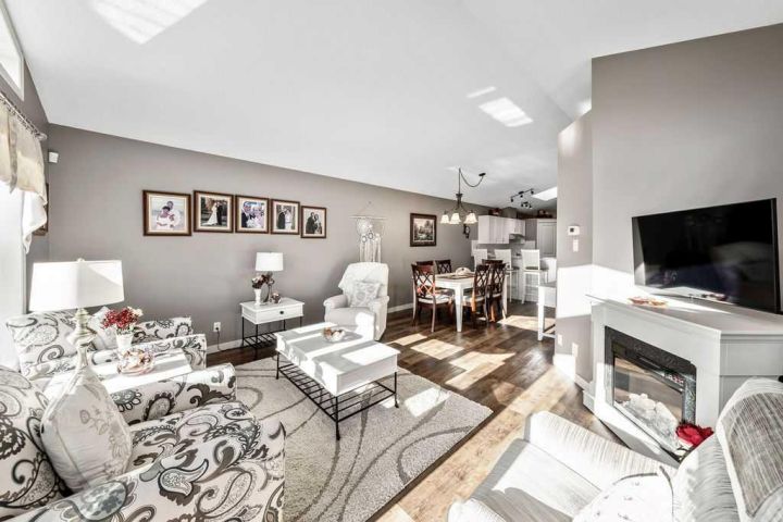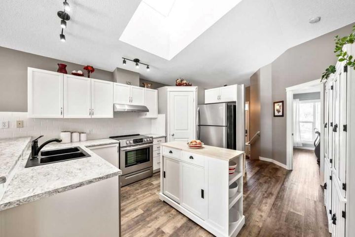 Absolutely stunning 4-bedroom, 2-bath home located in the highly desirable community of McKenzie Towne. This beautifully updated property is truly turnkey and ready for its next owner. As you enter, you’re greeted by a bright and welcoming front entry with impressive vaulted ceilings and an open, airy layout that fills the home with natural light. The thoughtful floor plan offers easy accessibility, making it ideal for a growing family or anyone looking for fewer stairs and comfortable single-level living. The spacious kitchen has been tastefully updated with new countertops, a newer range and hood fan, freshly painted cabinets with modern hardware, and the addition of a moveable island and cupboard unit for extra functionality and flexibility. The open-concept design flows seamlessly into the living and dining areas—perfect for entertaining guests or enjoying cozy family dinners. Above the kitchen, a skylight allows ample natural light to pour into the home. Throughout the main level, both the front and back windows have been replaced, and the back door has been widened to 36 inches with a sidelight for added brightness. New vinyl plank flooring, updated baseboards, and all-new interior doors complete the fresh, modern look. The primary bedroom is conveniently located at the front of the home, with a second bedroom nearby that’s ideal for guests or a home office. The main bathroom has been completely updated with a new vanity, toilet, and a reconfigured shower replacing the original tub. The upstairs bathroom also features in-floor heating. The fully finished basement offers two additional bedrooms, a full 4-piece bathroom, and a large storage area—perfect for a deep freeze or seasonal items. The cozy family room features a beautifully redesigned gas fireplace with a stone front, refined shape, and elegant mantle, creating a warm focal point for the space. Outside, you’ll find a large one-tier deck that has been recently levelled and upgraded with widened stairs set on concrete blocks—ideal for summer gatherings or quiet mornings with coffee. The backyard has been newly grassed and fenced, with lattice detailing around the deck, raised vegetable beds, and a variety of mature plants. A storage shed provides extra space for tools and seasonal decor, while the front yard showcases new brick borders outlining the flower beds for great curb appeal. Additional upgrades include new faucets and light fixtures throughout the home—including both bathrooms, the kitchen, dining area, and front entry—as well as new blinds on both levels. This McKenzie Towne gem offers a perfect blend of comfort, style, and functionality, close to parks, schools, shopping, and restaurants. Don’t miss your chance to call this beautifully updated home yours!