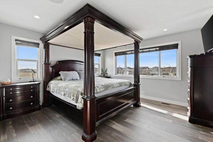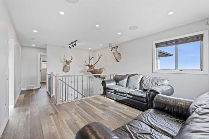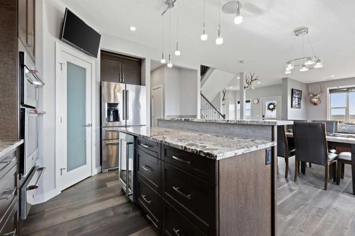 Welcome to 5 Hanson Lane – The Home That Truly Has It All! If you’re searching for a home that offers style, quality, and comfort, this custom-built property is the perfect fit. Designed and constructed by the homeowner with top-of-the-line finishes and upgraded electrical, this stunning home is move-in ready and waiting for your personal touch. Situated on a massive corner lot with no neighbors in front, you can enjoy peaceful mornings on your front porch as the sun rises. The oversized heated triple-car garage is ready for your projects — complete with in-floor heating (boiler required), welder wiring, and extra rebar in the slab for added stability. The west-facing backyard is a blank canvas, ready for your dream outdoor space. The steel-framed back deck is maintenance-free and ready for composite decking in the color of your choice. With RV parking in the front and a low-maintenance yard, this home offers both convenience and functionality. Inside, you’ll love the open-concept main floor featuring a gorgeous stone fireplace in the living room. The kitchen is a baker’s delight, complete with double wall ovens and warming drawer, gas range, wine fridge, all top-of-the-line KitchenAid stainless steel appliances. Under-cabinet lighting and updated fixtures enhance the sleek, modern design. Upstairs, you’ll find a bonus room, two spacious bedrooms, a laundry room with wash sink, and the luxurious primary suite. The primary retreat features a spa-inspired ensuite with double vanity, large walk-in shower, soaker tub, and private toilet area, as well as a massive walk-in closet and private west-facing balcony — perfect for watching sunsets or summer rain showers. The unfinished basement offers 9’ ceilings, large windows, and rough-ins for a wet bar — a true blank slate ready for your vision. It also includes in-floor heating (boiler required), reinforced concrete, and extra rebar for superior durability. Additional features include: Luxury vinyl plank flooring throughout, Photocell ambient stair lighting, Built-in speaker system (zone-controlled via app) in house, deck, and garage, 2024 hot water tank, Home security system. Don’t miss your chance to own this incredible property in the heart of Langdon. Book your private showing today with your favorite Realtor or join us this weekend for the open house!